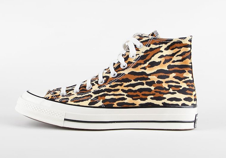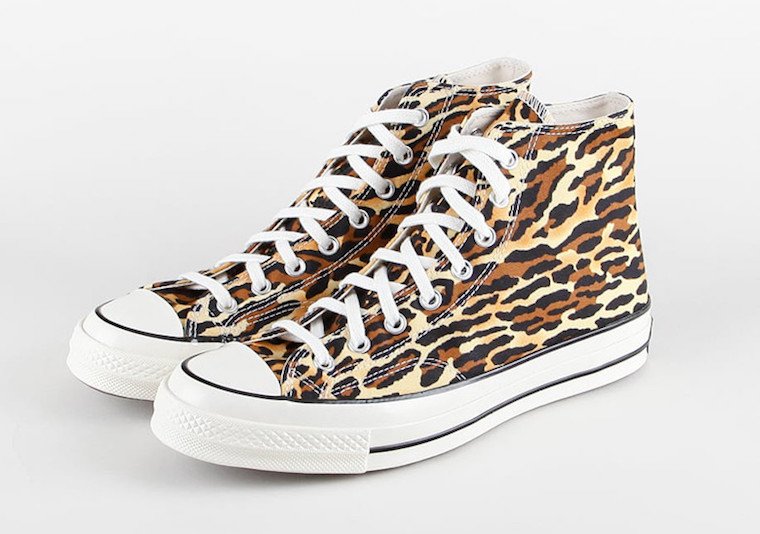 Peu connu dans nos contrées, le label de mode japonais Wacko Maria est une valeur sûre du vestiaire des amateurs les plus pointus de mode. La marque a su cultiver une identité propre avec pour fil conducteur l’imprimé grand format. Après s’être inspiré de la mythologie japonaise pour sa collection printemps-été 2019, Wacko Maria a préparé une saison automne-hiver axée sur l’animal et de nombreuses pièces se sont alors vues parées de motifs d’animaux sauvages. La marque nippone s’est associé avec la boutique taïwanaise Invincible, fondée par Jimmy Wu pour une triple collaboration avec Converse. Les deux marques ont développé un pack de Chuck 70 sur le thème animal, une haute et une basse, que nous vous présentons ici.