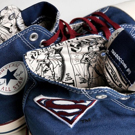 Converse et DC Comics s’associent pour la réalisation de deux modèles de Converse Chuck Taylor All Star Superman. L’un, assez sobre, est composé de canvas bleu avec le fameux « S » brodé à l’extérieur de la chaussure, tandis que l’autre est plus original, avec des illustrations. L’intérieur des deux paires est également doté d’imprimés à l’image du super-héros. Découvrez le reste des images dans la suite.