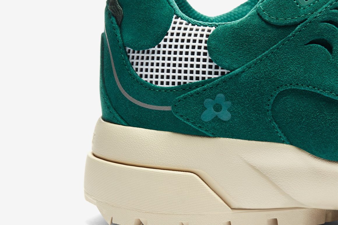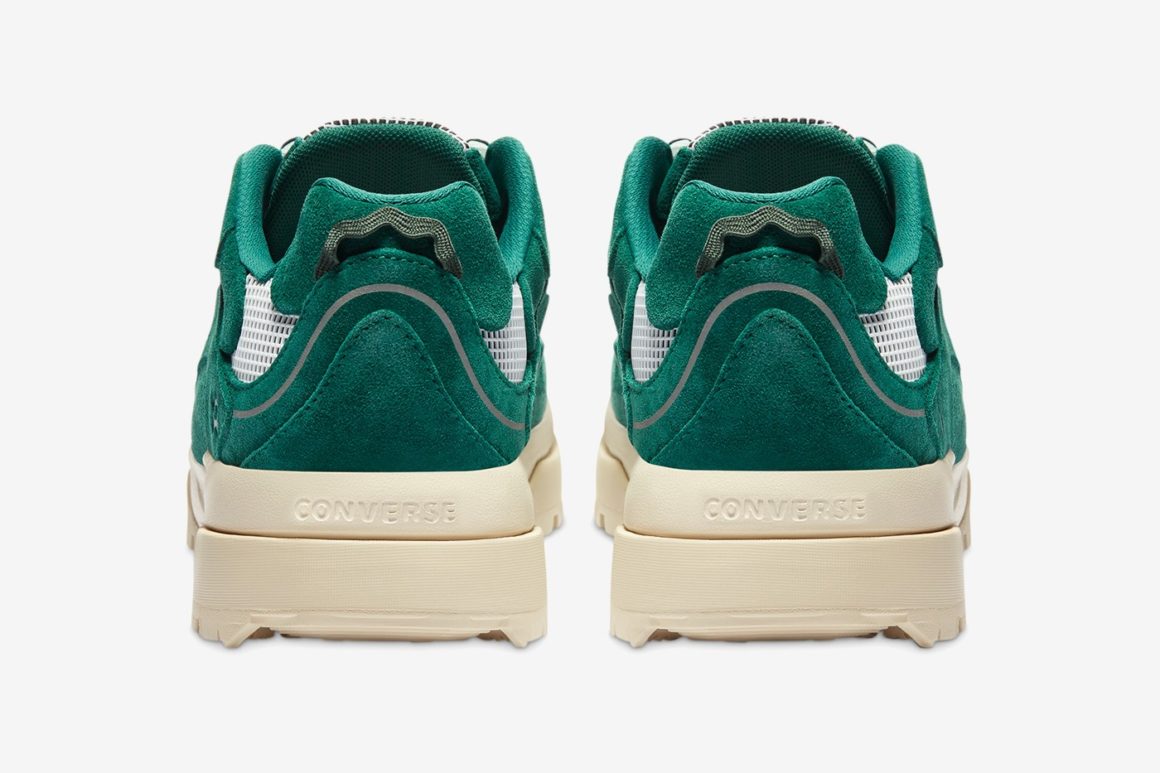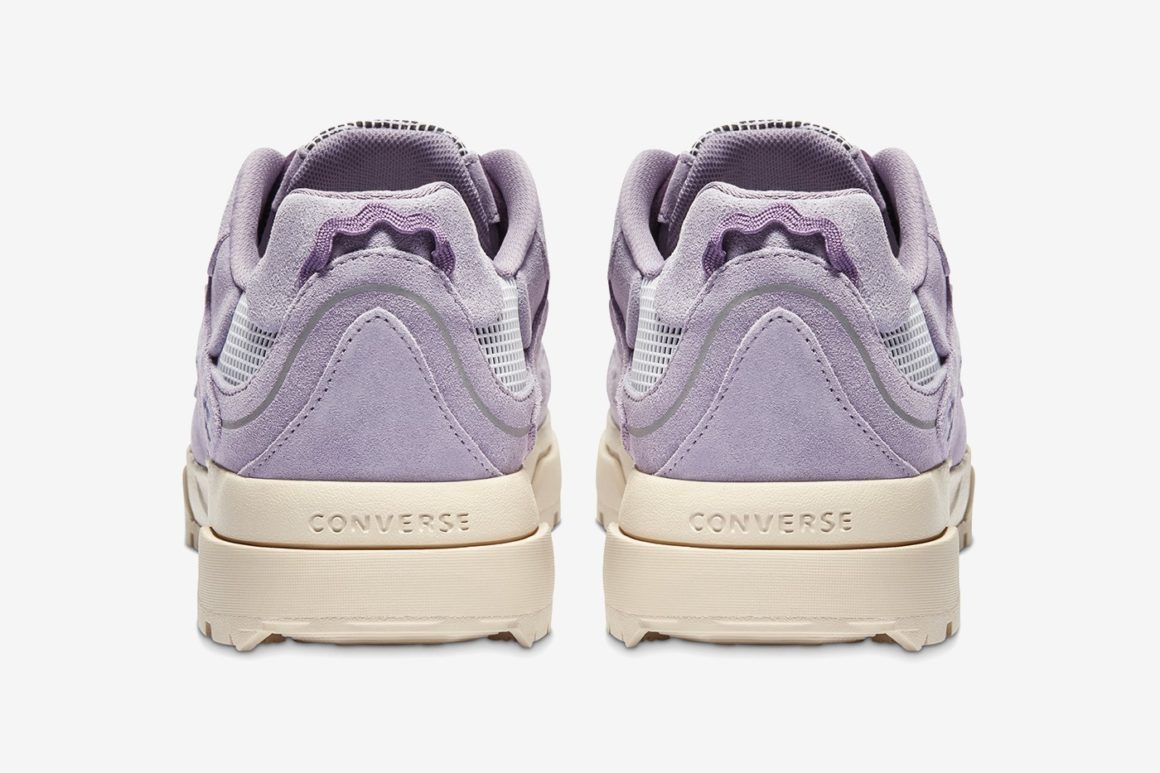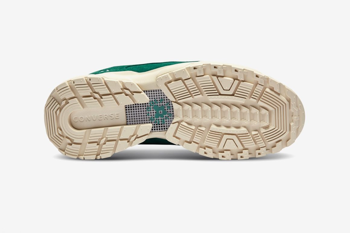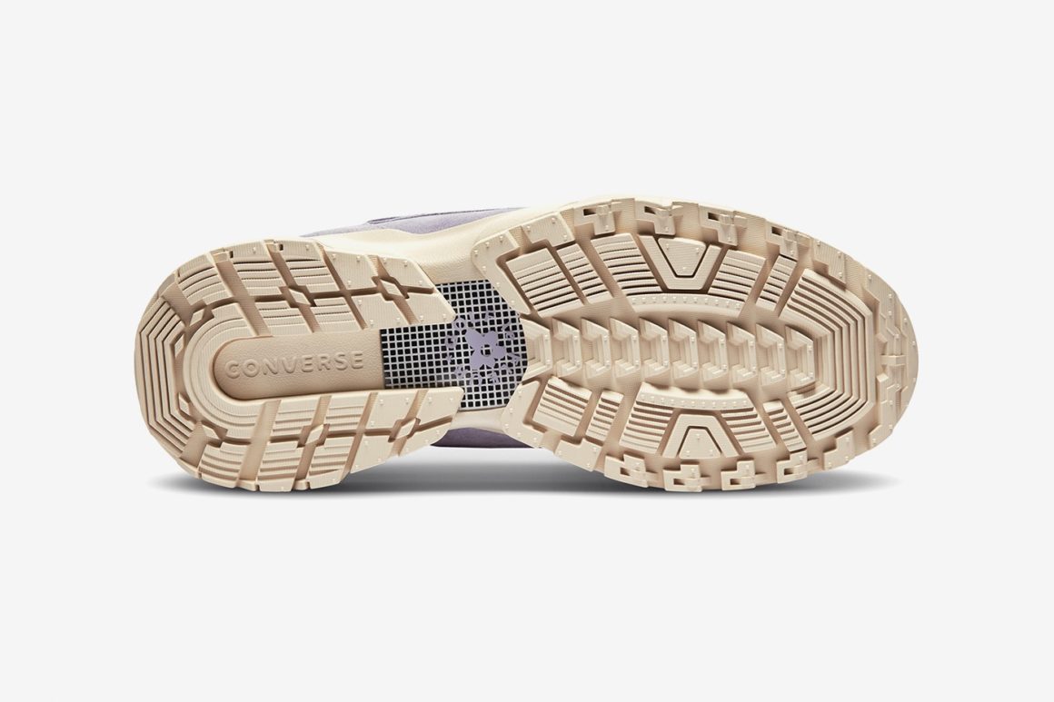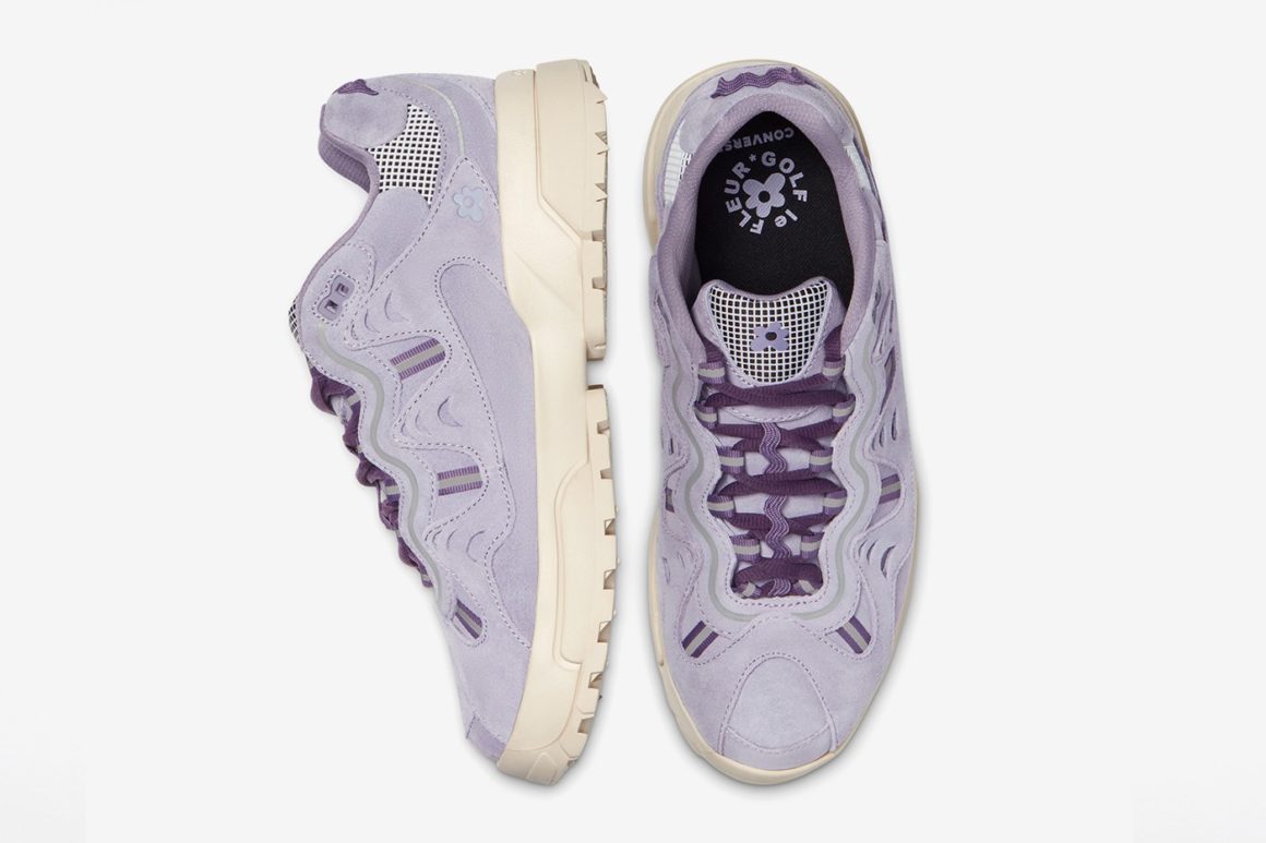 La première Converse Gianno rappelle la couleur de la lavande avec son coloris violet au rendu pastel. La seconde mouture est verte. Ces deux moutures, bien que commercialisées en plein automne, évoquent à leur manière la période printanière et l’univers coloré et excentrique de Tyler, The Creator. Les spécificités du modèle Gianno sont conservées. On retrouve la semelle EVA renforcée et nervurée qui offre une adhérence maximale sur tous les terrains. Des détails réfléchissants sont disséminés sur l’empeigne, facilement reconnaissables avec leur teinte grise. Plusieurs pièces de revêtement en ripstop font leur apparition sur le haut de la languette ainsi qu’autour de la cheville. Le look trail est également souligné par l’utilisation de lacets ronds sur les deux modèles. Ils sont visibles notamment sur la languette ainsi qu’autour de l’empiècement dédié aux lacets. Le logo Golf, Le Fleur est visible sur la tige à plusieurs endroits : au talon, sur le côté dans un coloris ton sur ton ou encore sur les semelles de confort.