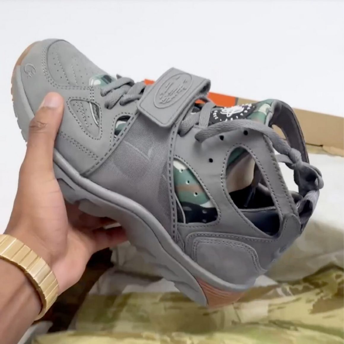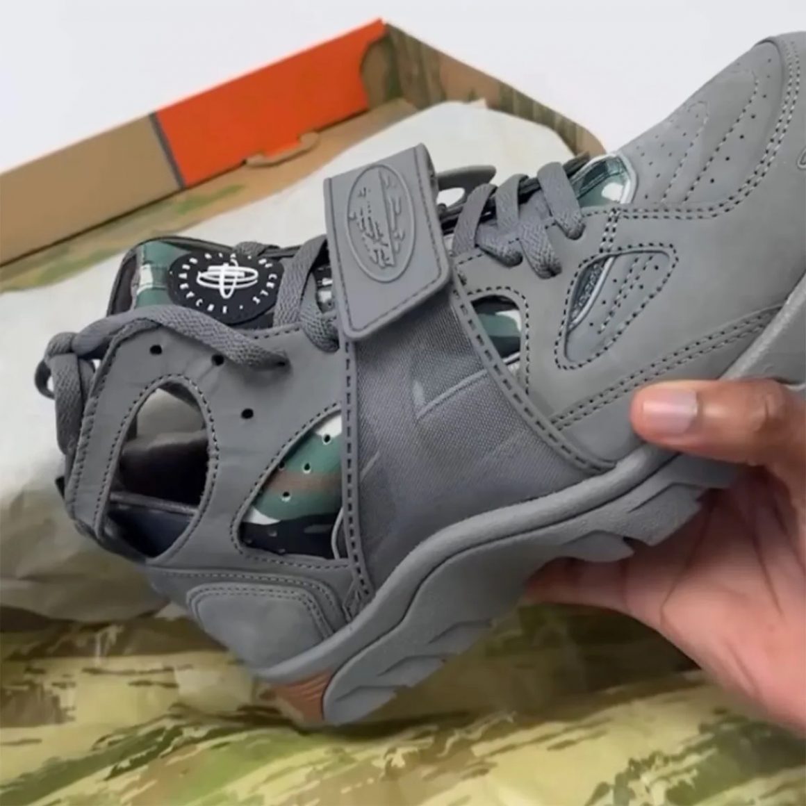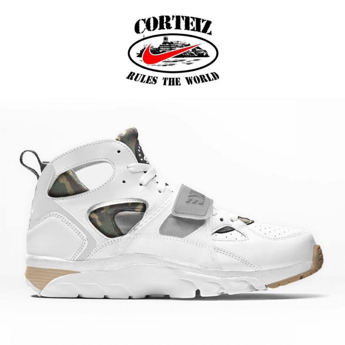 Le pack Corteiz x Nike Air Trainer Huarache proposera trois coloris intemporels, gris, noir et blanc, chacun offrant une approche unique de ce modèle classique. Le coloris gris, nommé Flat Pewter, apporte une touche subtile et polyvalente, parfaite pour s’adapter à diverses tenues, tandis que le modèle noir accentue le côté sombre et épuré pour un look urbain affirmé. Enfin, le coloris blanc offre un rendu lumineux et minimaliste, en faisant un choix parfait pour ceux qui préfèrent un style épuré. Chaque paire est marquée de l’esthétique caractéristique de Corteiz, intégrant des éléments graphiques sur le strap avec le célèbre logo Alcatraz et un mini branding distinctif brodé sur le quart avant de la paire. Pour sublimer la dimension streetwear de la collaboration, le chausson en Néoprène est habillé d’un motif camo mêlant vert, marron et noir. Les paires reposent sur une semelle intermédiaire assortie au cuir suédé de leur exosquelette, ainsi que sur une semelle extérieure dont les extrémités sont en gomme naturelle. Après avoir dévoilé les premiers clichés du coloris Flat Pewter, Clint, le fondateur de Corteiz, ne devrait plus tarder à annoncer la disponibilité prochaine de ce pack hommage à une silhouette révolutionnaire des années 90.