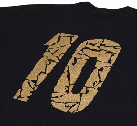 Les anglais de Deluded Monkey fêtent leur 10 ans en sortant deux tee-shirts dont le design est à l’image de leur passion. Le numéro 10 dans le dos est composé de 50 modèles mythiques de sneakers. Pour rappel, Deluded Monkey officie dans la vente de sneakers vintage depuis 1998 et a notamment écrit de nombreux articles dans SneakerFreaker.
