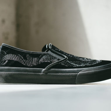 Vans sait se démarquer en proposant continuellement des partenariats forts aux thématiques diverses pour plaire au plus grand nombre. Extrêmement prolifique, les collaborations Vans s’enchaînent sans pour autant se ressembler. Récemment, c’est un modèle inspiré du monde du surf qui a vu le jour tandis qu’une gamme complète dédiée à Marvel est sortie en parallèle, dans le cadre de la collection Summer 2018. Dans la même perspective, la marque japonaise Deluxe, fondée en 2003, a été approchée par les équipes de la firme américaine pour ce tout nouveau projet. L’entreprise californienne a souhaité rendre hommage au dragon, l’un des éléments forts de la culture nippone, en imaginant cette Deluxe x Vans Slip-On « Black Dragon » qui vient d’être lancée sur le marché.