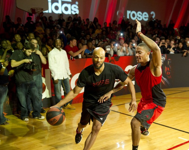 Si vous ne le saviez pas, l’artiste Common est un joueur de basket d’un niveau tout à fait acceptable et ça n’est pas la première fois qu’on le voit avec un ballon à la main. On ne savait pas en revanche qu’il était pote avec le MVP, Derrick Rose. Ils ont fait la promotion à Chicago de son nouveau modèle, la Adidas Adizero 2.