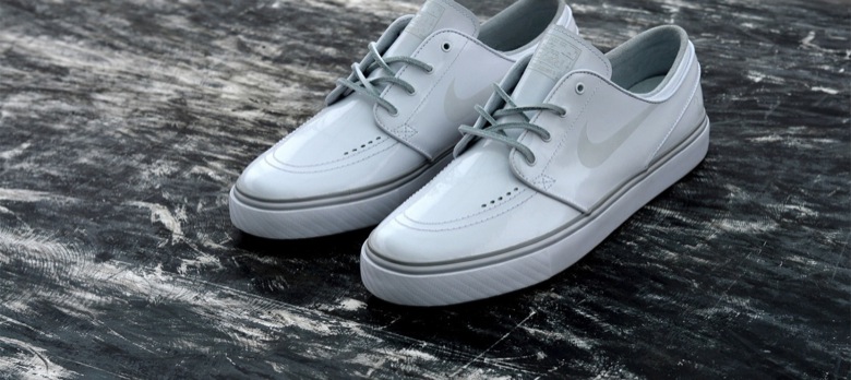 Ce n’est donc pas étrange si le shop d’Anvers s’offre pour cette fin d’année une collection capsule avec Nike SB. Leur choix s’est porté sur la Nike SB Janoski. Les paires ont été déclinées de la même façon : cuir verni monochrome, lacets en cuir et semelle de la même teinte que l’empeigne. Chaque paire est signée au niveau du talon.