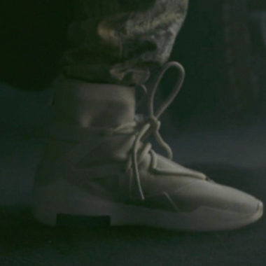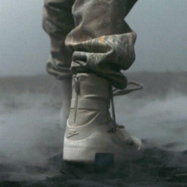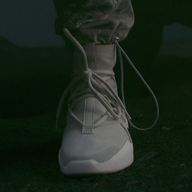 Les deux entités ont imaginé pour ce partenariat inédit une silhouette complètement nouvelle. Elle apparaît ici par le biais de clichés extraits de Sixth Collection, le Court-métrage de Jerry Lorenzo. La paire s’affiche dans ce qui est un look de « sneaker boot » à tige très haute qui rappelle notamment les SF Air-Force 1. Les inspirations semblent pourtant variées pour cette paire dont plusieurs éléments évoquent la Nike Air 180 telle la bulle d’air. L’empeigne laisse également penser à une chaussure de basketball. Elle est un seul et même chausson surmonté d’un jeu de lacets ronds et de son lace-lock. Une cage vient compléter son design tout en restant discrète. Le branding Nike est lui très minimaliste : on dénote la présence d’un Swoosh latéral de petit format ainsi que le Swoosh au talon. Enfin, la paire est présentée ici dans une mouture claire probablement beige ou grise même si ces premiers rendus photographiques ne permettent pas d’en déceler avec certitude la teinte.