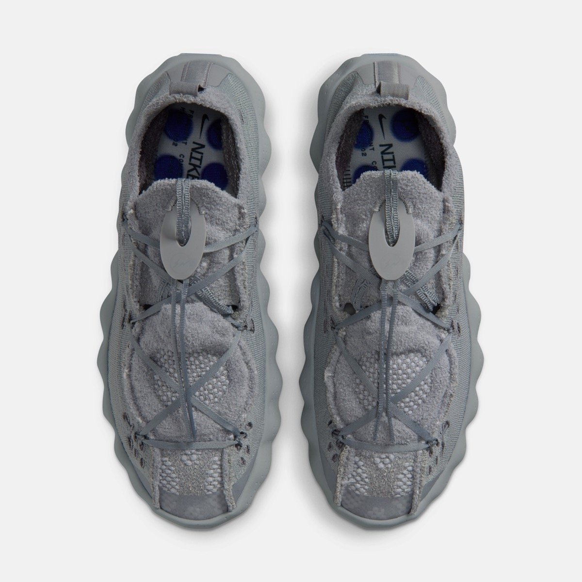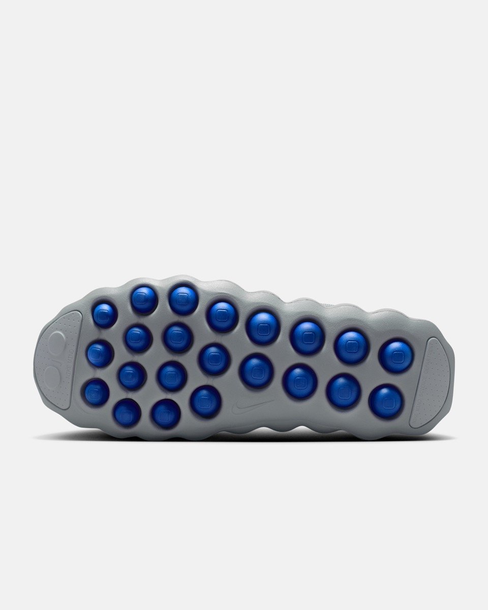 La base de cette Fragment Design x Nike Mind Collection repose sur la plateforme Nike Mind, une innovation développée pendant plus de dix ans par le laboratoire de recherche de la marque. Cette technologie vise à stimuler certaines zones sensorielles du pied afin d’améliorer la concentration, la récupération et la sensation de stabilité. Chaque paire utilise un système composé de vingt-deux plots en mousse placés sous la semelle. Ces modules bougent indépendamment les uns des autres, créant une sensation proche du contact naturel avec le sol. Ce fonctionnement doit activer les récepteurs sensoriels du pied et renforcer la connexion entre le corps et le cerveau. Deux silhouettes existent dans la gamme : la Nike Mind 001, une version mule facile à enfiler, et la Nike Mind 002, une sneaker avec lacets offrant plus de maintien. La collection Fragment reprend ces deux modèles en y ajoutant une construction plus technique et des finitions premium. Cette approche très scientifique donne à la Nike Mind un positionnement unique, à mi-chemin entre chaussure de récupération, sneaker lifestyle et objet de recherche.