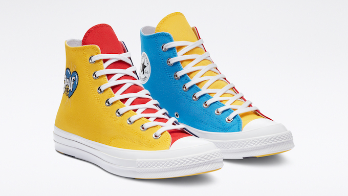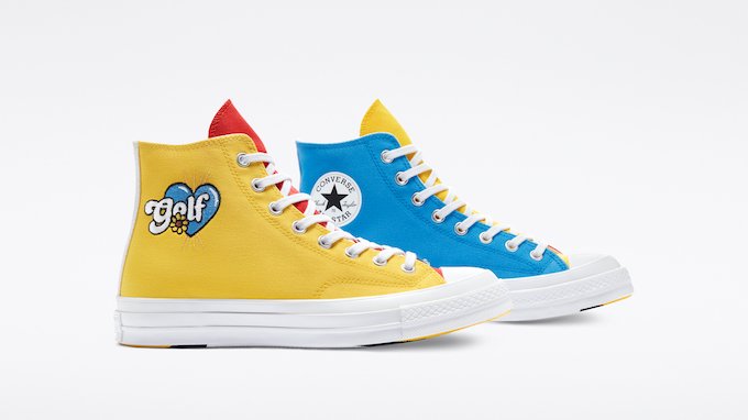 Le partenariat florissant qui lie Converse et le rappeur Tyler, The Creator poursuit sa belle histoire avec la présentation d’un nouveau coloris sur une sneaker mythique. Le membre du crew Odd Future revient aux sources après avoir levé le voile dernièrement sur une nouvelle silhouette, la Converse Gianno Ox, et s’attèle aujourd’hui à revisiter à sa manière l’un des classiques de la firme de Boston. Le rappeur présente ici une déclinaison très colorée qui s’inscrit à merveille dans la lignée de ses créations précédentes : la Converse Chuck Taylor All-Star Tripanels, dans le cadre de la collection Golf le Fleur.