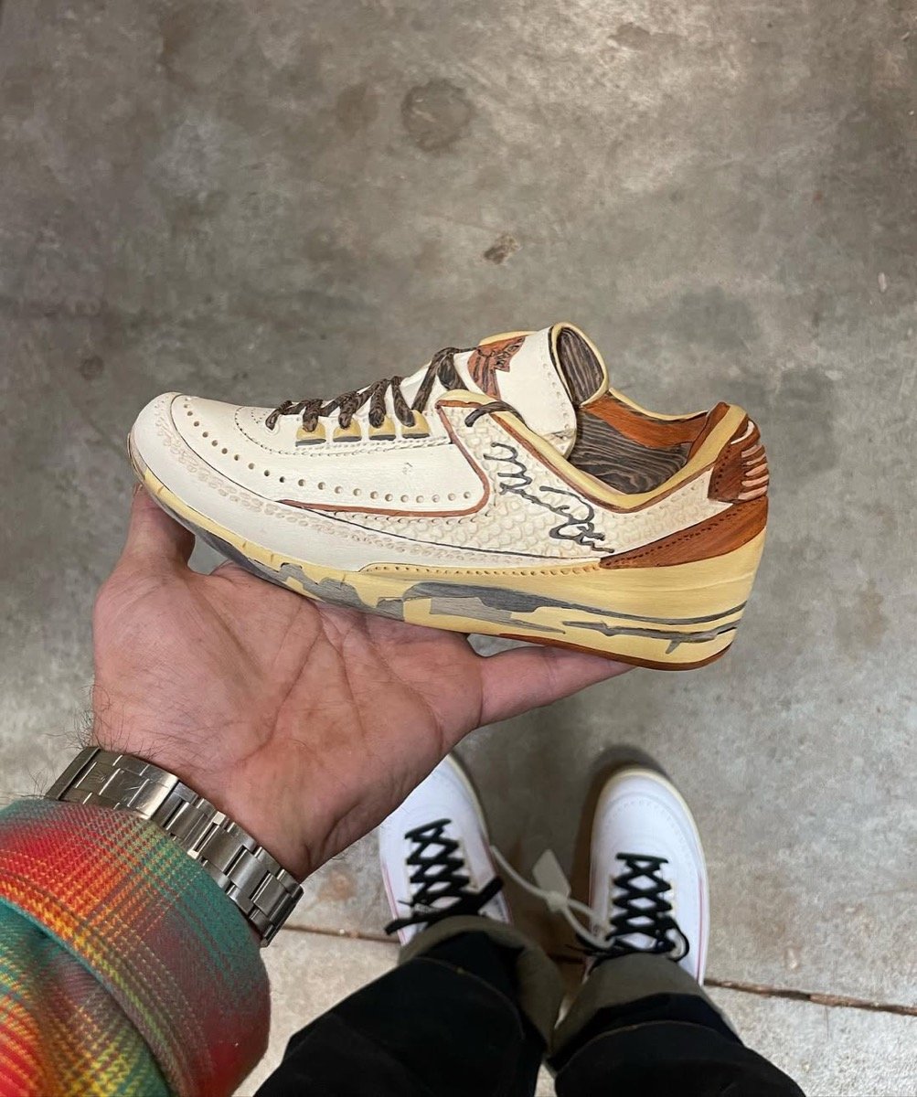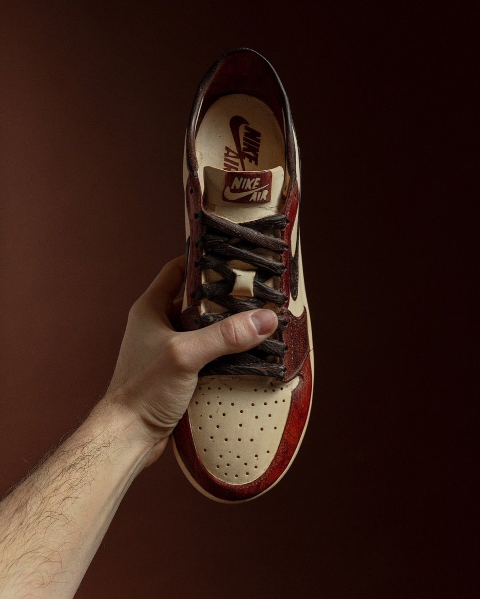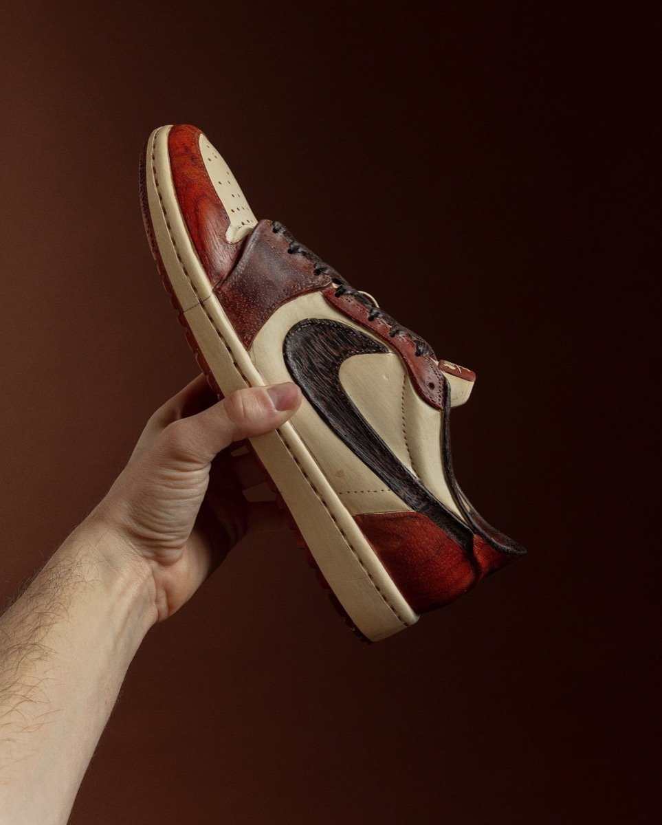 Steve Thomson, connu sous le pseudonyme Happy Life Wood, est un artiste spécialisé dans les sculptures en bois hyperréalistes. Ses œuvres, inspirées par des icônes de la culture contemporaine, s’inscrivent dans une démarche où l’artisanat rencontre la culture pop. Thomson n’en est pas à son coup d’essai dans le domaine du streetwear, il a déjà captivé les amateurs avec des versions en bois de modèles comme la Air Jordan 11, la Air Jordan 1 High ou encore le mythique maillot des New York Yankees. Avec cette Air Jordan 1 Chicago Low, Thomson s’attaque à un modèle mythique et emblématique. Ce projet témoigne de sa capacité à réinterpréter des classiques tout en respectant leur essence.