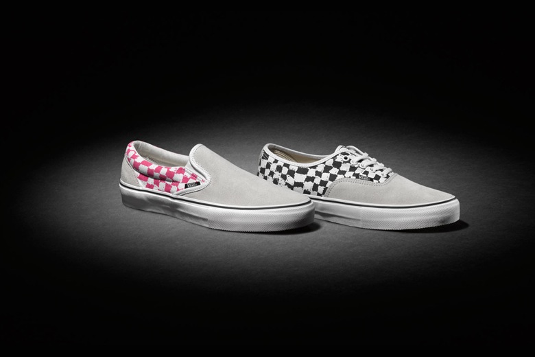 Pour ce printemps, il reprend le fameux damiers de Vans en l’appliquant sur une Slip-on Pro S et une Authentic Pro S. Les paires sont en toile et daim.