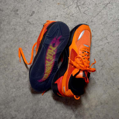 Pour ce nouveau projet, Puma s’est inspirée de l’univers du jeu de Hot Wheels connue pour ses voitures miniatures et plus particulièrement de la Chevrolet Camaro. La muscle car est, en effet, souvent proposée dans une teinte orangée qu’a souhaité reprendre la marque au félin. Des touches de couleur rouge se distinguent aussi pour ce qui est de la tirette sur la languette ou encore l’empiècement latéral de l’empeigne sur lequel on retrouve un Formstripe futuriste. La semelle EVA est à l’opposé graphiquement avec sa teinte noire. Côté construction, l’association d’éléments en cuir et en mesh est complétée par plusieurs parties réfléchissant la lumière dans l’obscurité. Le logo Hot Wheels s’affiche sous chaque semelle extérieure ainsi qu’aux talons des deux pieds et complète ce look moderne qui réinvente la silhouette éponyme des années 80.