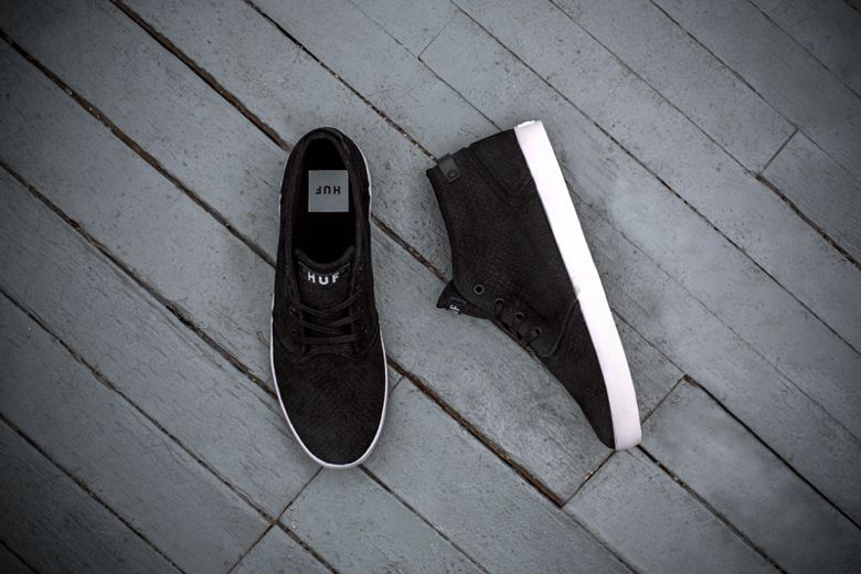 Si l’on n’observe aucune nouveauté sur les tiges proposées par HUF, on remarque néanmoins l’utilisation de jolis traitements appliqués sur des paires comme la Classic Hi marron, la Sutter et son cuir ciré ou encore avec la HR-1 (le modèle hybride façon trail et sa semelle à bulle d’air). Découvrez la totalité de cette collection HUF Footwear Holiday 2014 avec les images qui suivent.