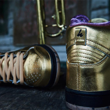 La ville emblématique de Louisiane, sublimée à l’écran dans de nombreux films ou séries comme Treme, est donc mise à l’honneur pour cette sortie inédite. Pour ce faire, l’équipementier américain s’est rapproché du shop Humidity situé dans le French Quarter et ainsi concevoir une paire de Dunk dans sa version montante. Le résultat est une sneaker truffée de détails liés à la musique, la ville étant le berceau du jazz. Nike a ainsi conçu la paire comme étant un instrument à part entière. À ce titre, l’étonnant coloris principal de cette chaussure, entièrement cuivrée, s’inspire directement des instruments de musique omniprésents dans la culture locale : trompette, trombone ou encore saxophone pour n’en citer qu’eux. Le rembourrage intérieur violet satiné fait référence aux étuis de transport de instruments. Enfin, un nœud papillon rouge appliqué à même les lacets rend hommage à l’un des plus grands musiciens de tous les temps et certainement la figure emblématique de Crescent City : Louis Armstrong. Autre détail qui a son importance, la présence de notes musicales disséminées sur la semelle translucide pour compléter le design de cette Dunk.