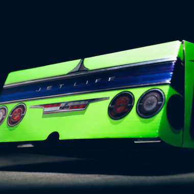 On retrouve l’inscription du label Jet Life du rappeur sur la languette, ton sur ton, scellant ce nouveau partenariat. Cette même languette, proposée en mesh et cuir, renferme d’ailleurs une poche intérieure « secrète », une « stash pocket », pour y placer sa weed. Le modèle sorti en 2017 lors du NBA All-Star Game affichait déjà cet attribut insolite. En complément, la paire sera vendue dans une boîte spéciale représentant une Low-Rider verte. Les autres couleurs de ce packaging inédit feront également écho à ceux appliqués sur la sneaker. La semelle de confort reprendra d’ailleurs des graphiques liés à la culture californienne de ces voitures à suspension indissociables de la West Coast.