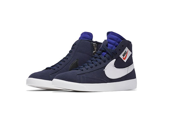 Toutefois, l’ADN de la Blazer originelle est conservé. Chaque paire est ainsi proposée dans une empeigne suédée ici dévoilée dans quatre moutures : bleu marine, noir, beige et beige très clair. Le Swoosh latéral est également de la partie. Il est noir ou blanc selon qu’il s’agisse de l’intérieur ou l’extérieur de la chaussure et s’accorde parfaitement avec la semelle blanche commune à ce quatuor pour le moins original.