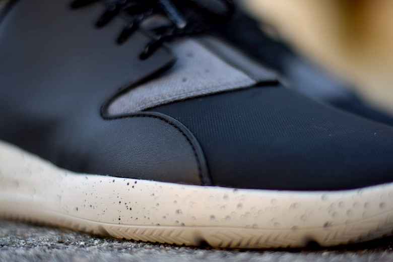 Le modèle a été revu pour une saison moins clémente avec cette association de néoprène et de cuir. On reconnait d’ailleurs des lacets qui collent à ce thème hivernal avec ce moucheté appliqué sur des lacets ronds. Mais c’est surtout le coloris au global qui a retenu notre attention. Ce mix de gris, de noir et de rouge rappelle les plus belles heures des Air Jordan. La semelle extérieure avec son traitement « speckle » est clairement un clin d’œil à l’emblématique Air Jordan 4.