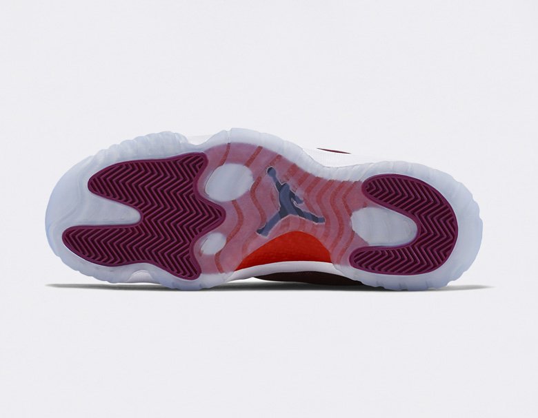 Cette paire est en mesh bordeaux. Sa particularité réside dans la sous-couche qui semble arborer une sorte de camouflage de la même couleur avec quelques pointes plus claires. Si le motif est difficile à distinguer à la lumière normale, on s’aperçoit tout de suite de la différence lorsque les sneakers sont mises sous la lumière. Une partie de ce dernier est en effet réfléchissant (de type 3M) et l’on aperçoit donc les détails de manière bien plus distincte. L’intégralité de la paire est sur un thème bordeaux : empiècements en cuir, lacets, détails au talon et même le chausson intérieur. La semelle intermédiaire est blanche et l’extérieur est transparent.