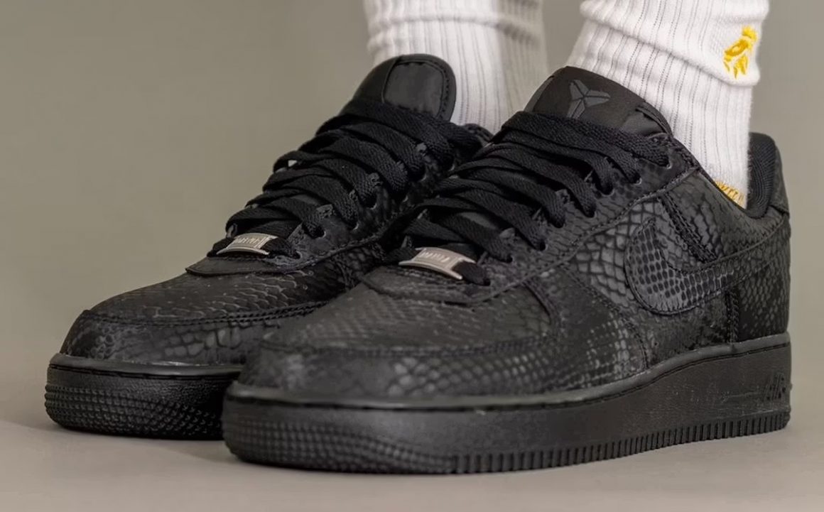 Prévue pour novembre 2025, la Kobe Bryant x Nike Air Force 1 “Triple Black” s’impose comme une version à la fois sobre et redoutablement élégante de la silhouette la plus iconique de Nike. Fidèle à l’héritage de Kobe Bryant, cette édition adopte un traitement monochrome noir intégral et une texture peau de serpent qui vient rappeler l’esprit de la “Black Mamba”.