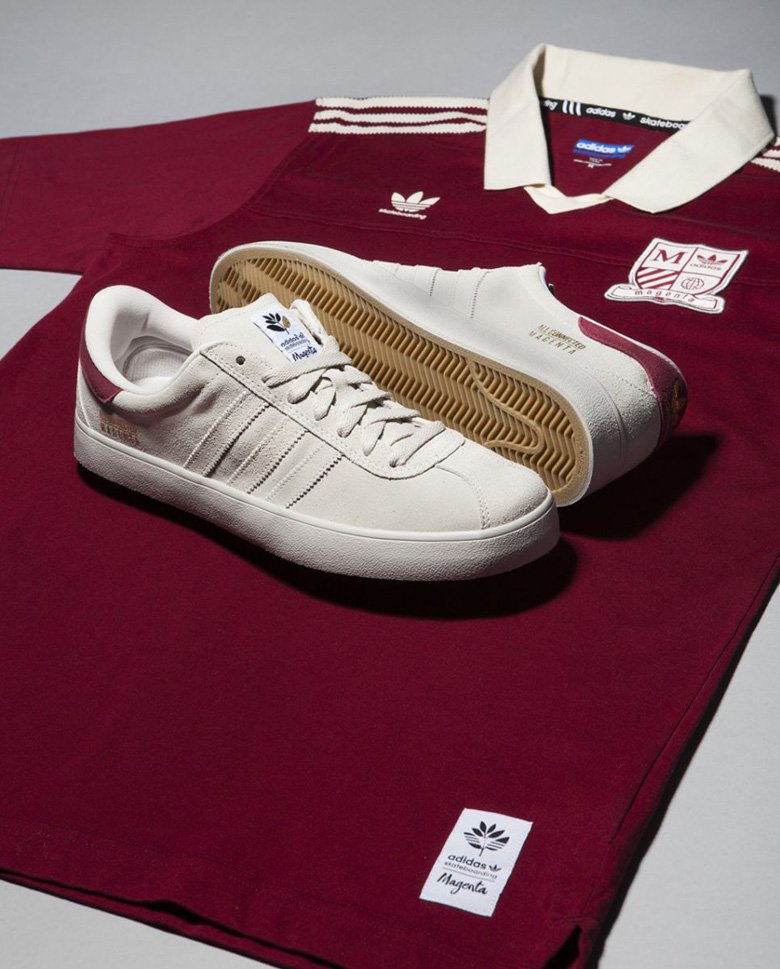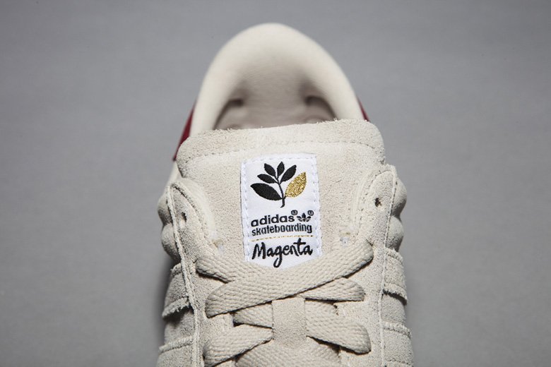 Pour leur collection avec adidas Skateboarding, Magenta a choisi de travailler une silhouette qui avait disparu du catalogue de la marque, l’adidas Skate, une adaptation de l’adidas Gazelle pour la pratique du skateboard.
