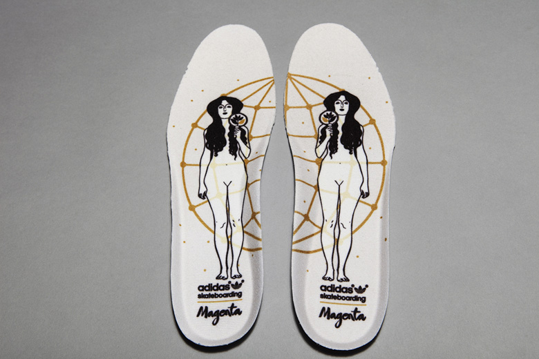 Pour leur collection avec adidas Skateboarding, Magenta a choisi de travailler une silhouette qui avait disparu du catalogue de la marque, l’adidas Skate, une adaptation de l’adidas Gazelle pour la pratique du skateboard.