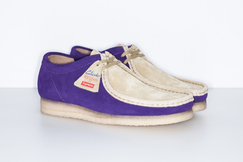 Supreme et Clarks travaillent régulièrement ensemble sur des collections communes. Pour ce printemps 2015, c’est la Clarks Wallabee, dans sa version basse, qui a été retravaillée par la marque new-yorkaise.