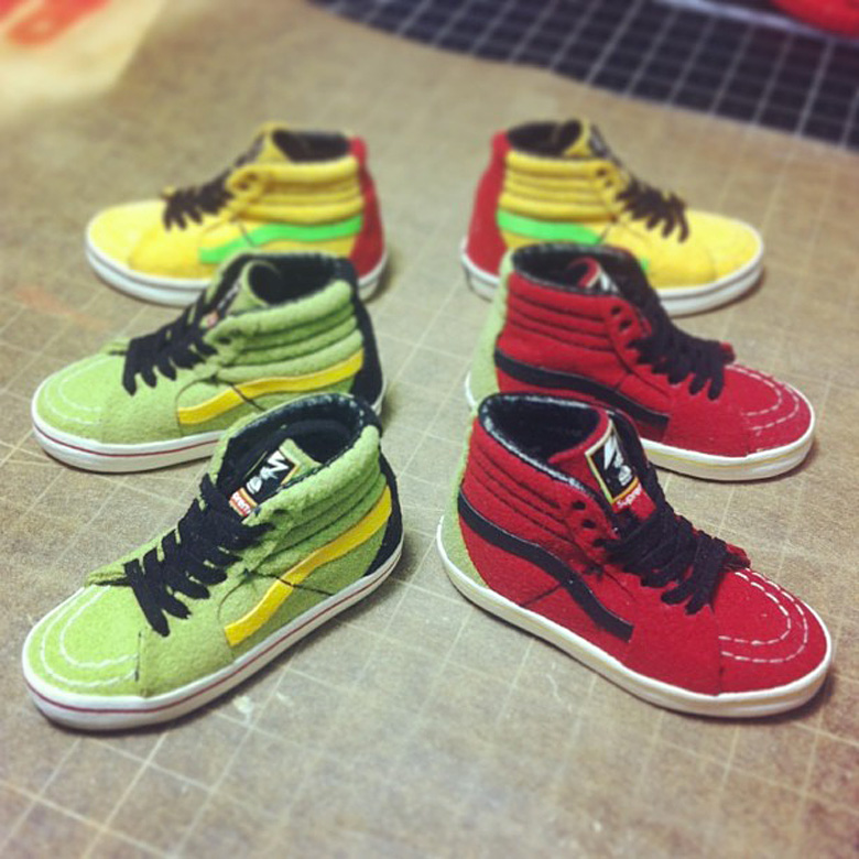 Ses sneakers miniatures sont confectionnées avec une grande minutie afin d’être le plus fidèle aux modèles reproduits comme des Nike Air Force 1, des Air Jordan 1 ou des Vans Sk8-Hi.