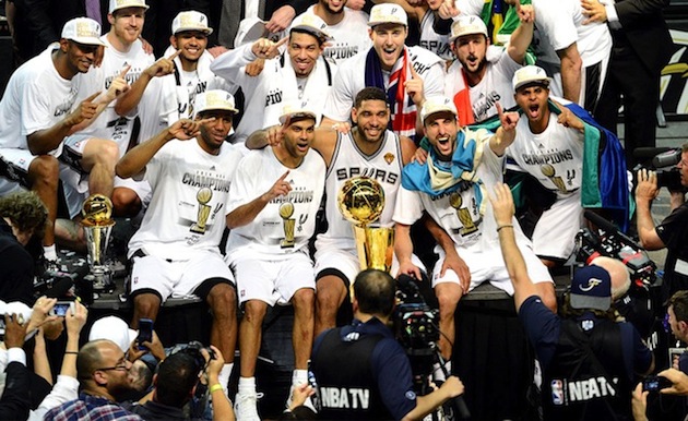 Les Spurs de San Antonio ont remporté leur match de cette nuit 104 à 87 face au double champion en titre, le Heat de Miami emmené par Lebron James. Les joueurs de Gregg Popovich remportent donc leur série avec 4 victoires pour 1 défaite et deviennent champion NBA sur leur parquet face à leur fantastique public. Le Big Three des Spurs réalise son pari et tient sa promesse en prenant leur revanche sur une équipe de Miami qui les avait battus un an auparavant grâce à un tir légendaire de Ray Allen. Gregg Popovich peut être très fier de ses joueurs qui ont répondu présents durant toute la série et qui ont produit l’un des plus beaux basketball du circuit. Cette victoire s’avère bénéfique pour la France, vu qu’elle titre Tony Parker pour la quatrième fois de sa carrière mais surtout le capitaine de l’équipe nationale, Boris Diaw (Premier MIP « Most Improved Player » a gagné un titre NBA). Malgré son âge vieillissant, Tim Duncan demeure l’élément clé de cette franchise (présent lors des 5 titres NBA de la franchise de San Antonio) en cumulant 18 points et 10 rebonds sur la saison. L’ailier fort peut ainsi passer le flambeau au jeune Kawhi Leonard qui a été élu MVP des finales grâce à son adresse, son intelligence de jeu et surtout pour son excellente défense sur Lebron James. L’arrière des Spurs représente donc le meilleur atout pour l’avenir de la franchise qui devrait encore amasser quelques titres sur son passage. Plusieurs images et vidéos récapitulatives de ces finales NBA 2014 sont à découvrir dans la suite de la news.