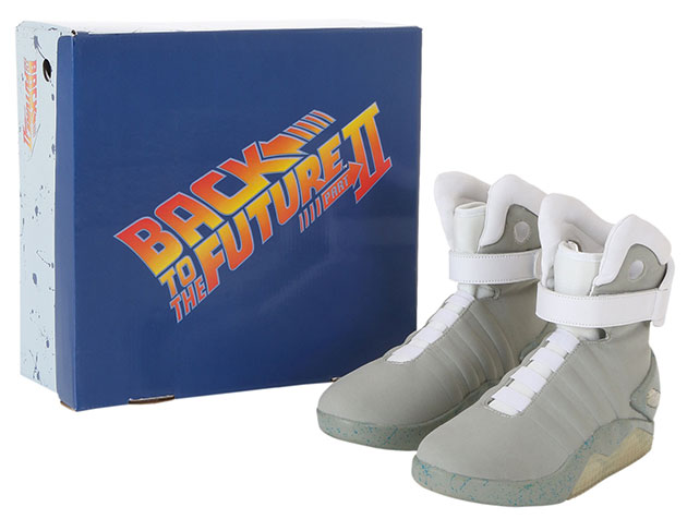 Universal Studios possède les droits de distribution des films « Retour vers le futur ». Les studios viennent d’autoriser le site Halloween Costumes à créer des répliques de la Nike Air Mag. La paire ne comporte évidemment aucun branding (Swoosh ou inscription Air Mag) mais est disponible à la précommande au prix de 100$. Comme pour la paire officielle de 2011, celle-ci est livrée avec un chargeur pour permettre de recharger les lumières de la semelle. La boite reprend le logo du film ainsi que l’effet moucheté de la semelle.