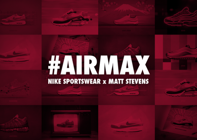 Matt Stevens avait déjà fait parler de lui en 2011 en lançant son projet de livre intitulé MAX 100. Fort de son succès, il a été amené à travailler directement avec Nike sur sa série Nike Air Max. La marque à la virgule fait constamment évoluer ses classiques en les réinventant avec de nouvelles technologies : hyperfuse, engineered mesh… Elle a demandé au designer de lancer le projet #AIRMAX : créer des images des mythiques Air Max 1, Air Max 90, Air Max 95, et Air Max 97 en puisant son inspiration dans le design des modèles, leur innovation voire leur mutation. La série qui en découle vous est présentée dans son intégralité dans la suite de cette news.