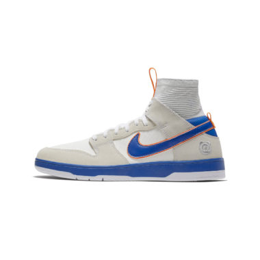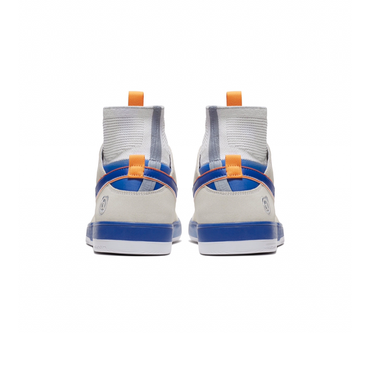La première collaboration sur une paire de sneakers Nike SB avec Medicom Toy date de 2004 et la version imaginée pour cette association reste, 14 ans plus tard, un modèle culte. C’est en reprenant les caractéristiques de cette Nike SB Dunk Medicom qu’une version modernisée voit le jour cette saison pour une sortie en édition limitée. C’est une nouvelle fois la Nike SB Dunk Elite qui est utilisée, mais en version à tige montante cette fois-ci. Cette paire dispose donc de la nouvelle semelle Nike Zoom et d’une empeigne plus proche du pied avec du suede associé à des matières plus modernes comme le Nike Flyknit appliqué au niveau du haut de la cheville. On retrouvera le double Swoosh en cuir édité en bleu et orange sur cette sneaker. Le logo en forme d’arobase se retrouve brodé au talon de chaque pied. Pour accompagner cette édition limitée, la marque japonaise a également édité des Be@rbrick en tailles 100%, 400% et 1000% reprenant le coloris de la Dunk.