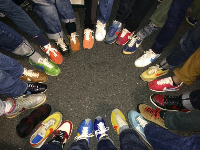 Waffle Trainer, Sierra, Spiridon, Night Track, Cortez, Boston Oceania, LDV, LD-1000, Eagle, Colorado sont autant de modèles des années 1970-1980 que vous auriez peut-être pu apercevoir lors de cette rencontre entre passionnés et collectionneurs d’articles Nike vintage à Tokyo. C’est forcément au Japon que ce type de meeting a lieu. Non pas que les Européens ne pourraient pas réunir autant de perles au même endroit mais l’amour du vintage est bien plus fort au pays du soleil levant. Que ce soit des jeans, des vestes militaires ou encore des sneakers, les Japonais ne font pas les choses à moitié lorsqu’ils collectionnent. (vous pourrez apercevoir quelques détails des denims portés dans la photo de la fin)