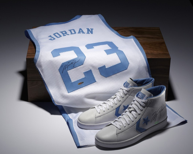 Il y a 30 ans, Michael Jordan gagnait un titre universitaire avec UNC (University of Carolina) grâce à un shoot devenu légendaire. Il portait alors des Converse. Converse et Michael Jordan s’associent pour célèbrer cet événement en sortant un pack réunissant une paire en taille 13US (la taille de Jordan) accompagné d’un jersey en taille 40. Trente packs ont été édités et seulement 23 mis en vente sur eBay et les bénéfices seront reversés à la fondation James R. Jordan.