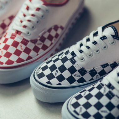 Concernant les Vans Authentic, c’est le fameux damier (checkerboards) qui a été mis sur l’avant du pied et la semelle intermédiaire. Cette fois-ci encore ce sont des déclinaisons blanc/rouge et blanc/noir.