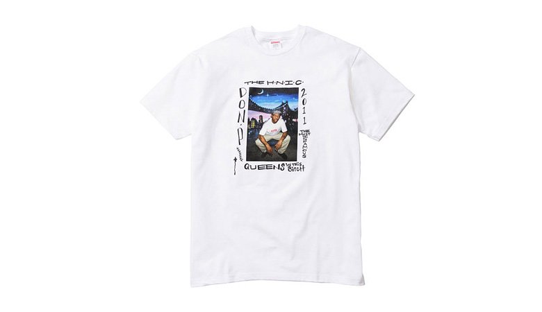 Comme chaque saison désormais, Supreme propose un tee-shirt en hommage à une personnalité prise en photo (généralement par Kenneth Cappello) arborant un tee-shirt logo-box Supreme.