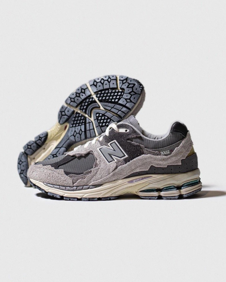 Le modèle New Balance 2002R puise ses racines dans le haut de gamme running du début des années 2010. Remise au goût du jour dès 2020, cette silhouette est propulsée dans une autre dimension grâce au travail de Yue Wu, designer interne chez New Balance. Le Protection Pack, ou “Refined Future” dans sa nomenclature initiale, se distingue immédiatement par son approche radicale, superpositions de suède à bords bruts, découpage irrégulier, absence d’uniformité parfaite, comme si la sneaker avait traversé le temps sans jamais sacrifier sa structure. La base reste fidèle à l’ADN running de la 2002R, avec une semelle intermédiaire ABZORB SBS, un amorti N-ERGY, et une tige en mesh respirant. Mais ce sont les empiècements de cuir suédé usé, disposés en couches effilochées et asymétriques, qui définissent visuellement cette création. L’imperfection devient ici le signe d’un raffinement inattendu. L’équilibre est subtil entre brutalité apparente et harmonie d’ensemble. Chaque paire semble sortie d’un processus artisanal, patinée, imparfaite, et donc profondément humaine.