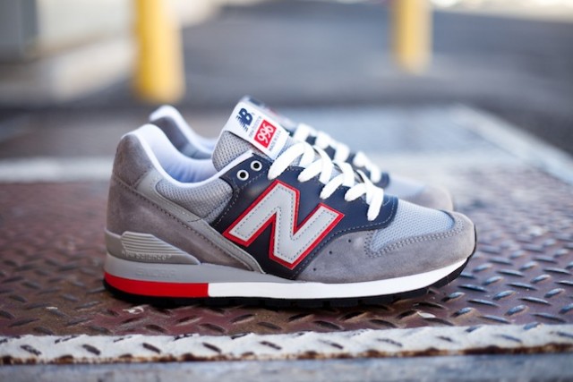 New Balance propose pour sa collection Holiday 2012 une nouvelle New Balance M996 Made in USA. Cette sneaker utilise un mix de suede, de mesh et de matériau 3M contrasté par un empiècement en cuir bleu marine qui entoure le logo de la marque. Le logo de la marque et le talon de la sneaker sont, quant à eux, mis en avant avec un coloris rouge vif. Cette New Balance 996 « Grey/Navy » « Made in USA » est déjà disponible aux Etats-Unis et est à découvrir plus en détails dans la suite de la news.