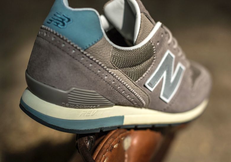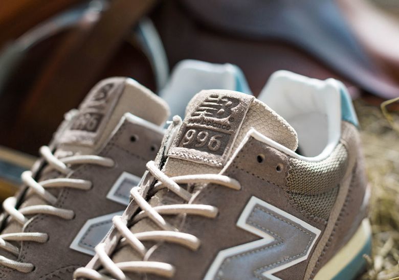 Cette New Balance 996 est faite d’un cuir suédé gris associé à un mesh de même couleur. Plusieurs parties de la paire sont de couleur bleu ce qui apporte une petite touche d’originalité à cette sneaker relativement sobre. On note que c’est une New Balance 996 à semelle Revlite qui a été choisie ici, certainement pour alléger la réalisation à la différence de la précédente collaboration.