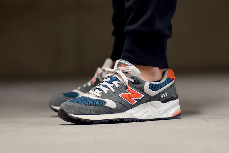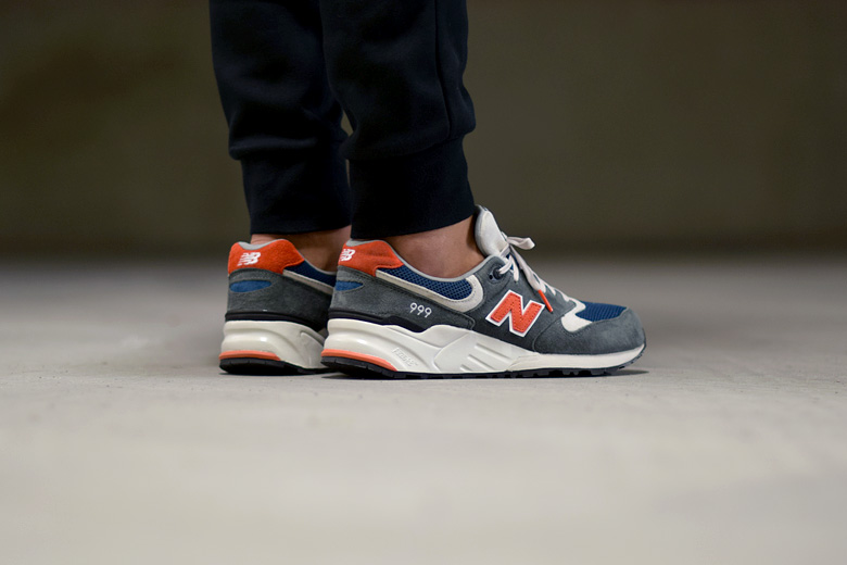 Ce modèle, qui appartient à la saison automne/hiver 2015, propose un combo de couleurs très élégant et rappelle le savoir-faire de la marque américaine en la matière. Les parties en daim de la sneaker sont déclinées en beige, bleu et orange. Du mesh bleu marine est également présent sur l’avant du pied et les côtés. Le rendu porté de la paire de sneakers sur nos images est assez parlant et ce modèle est très réussi.
