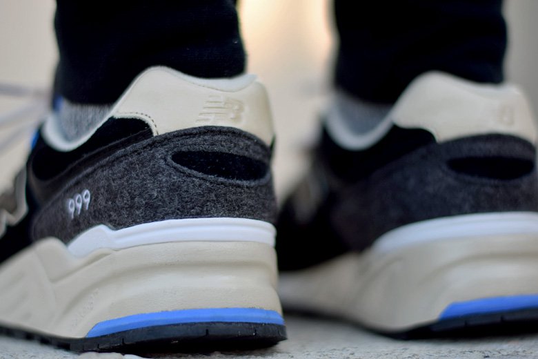 La paire présentée sur cette news est très sobre avec cette association de noir et de beige qui est ponctuée par du gris. Le mélange des matières est très réussi : du daim noir et de la laine grise. Cette dernière est d’ailleurs peu utilisée sur les sneakers alors que son utilisation est parfaite sur cette 999 avec sa présence au talon et le rappel sur la languette.