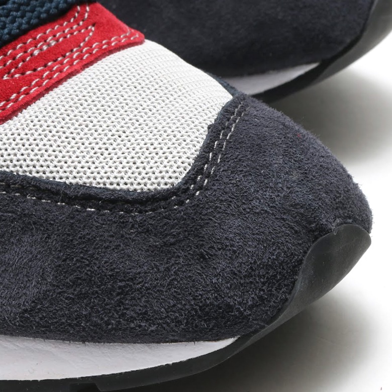 On vous présente aujourd’hui un coloris inédit sur cette New Balance 996 aux empiècements en cuir suédé de couleur rouge bordeaux et bleu qui contrastent avec un mesh gris clair.