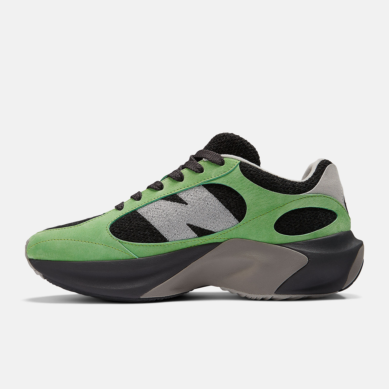 La New Balance WRPD Runner Lime Green reprend une construction similaire à celle du coloris Marine Blue. Elle remplace le gris par du platine, notamment visible sur les logos latéraux et le talon. Quant au cuir suédé de l’empeigne, il se pare ici de vert citron, pour un rendu acidulé.