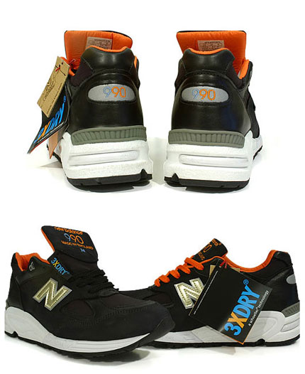 Hanon sort à nouveau une tres belle paire de New Balance. Les aficionados de la 990 auront remarqué que le sigle USA a disparu à l’arriere au profit du numero du modele. La paire realisee en collaboration avec Schoeller est un veritable concentre de technologie. Son tissu protegera vos petits pieds contre la pluie pour un confort inegale. Le confort, le made in England ont un prix : à peu pres 120 livres soit 180 euros.