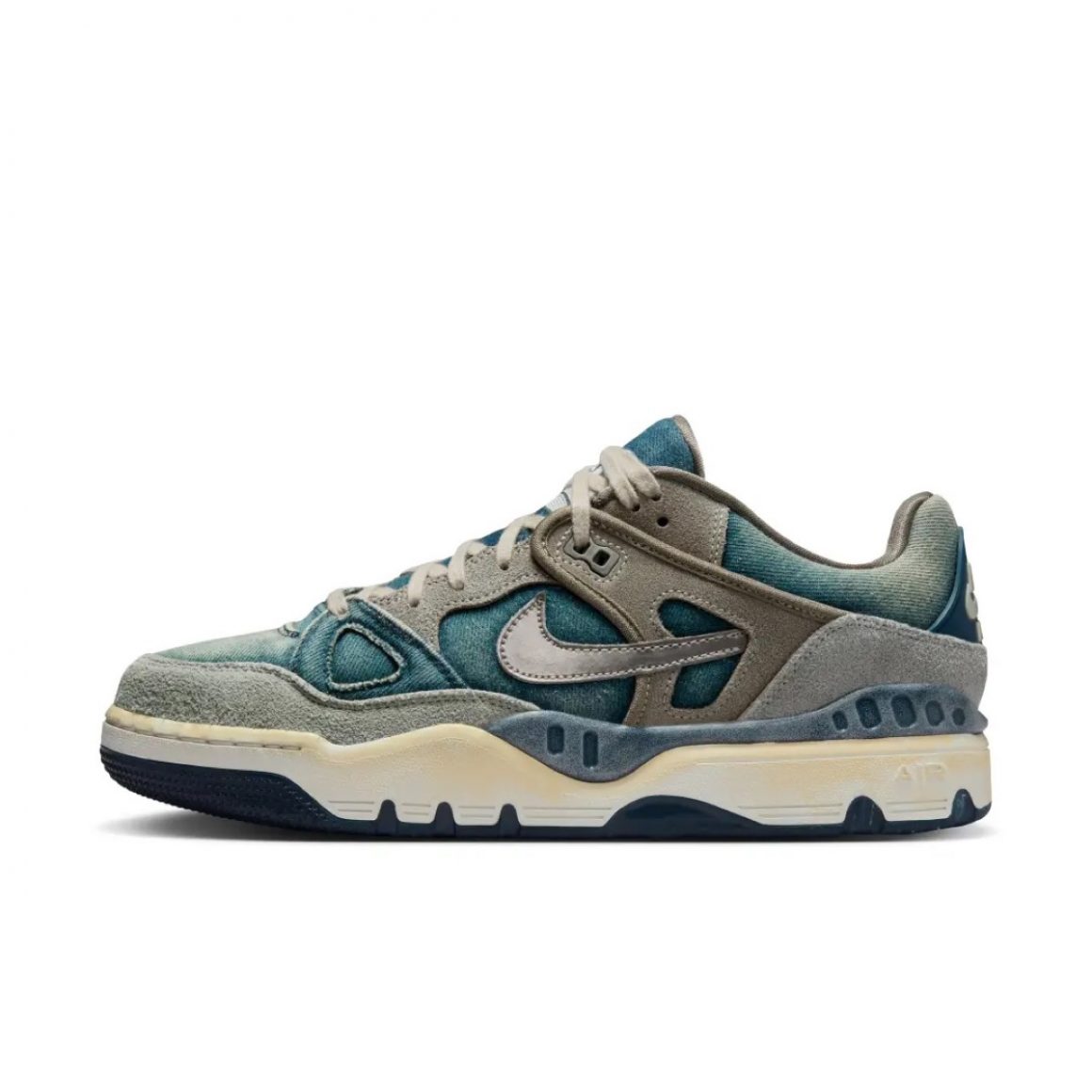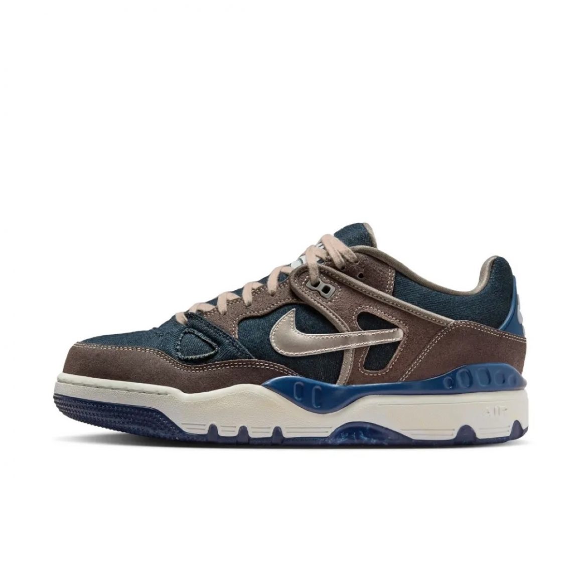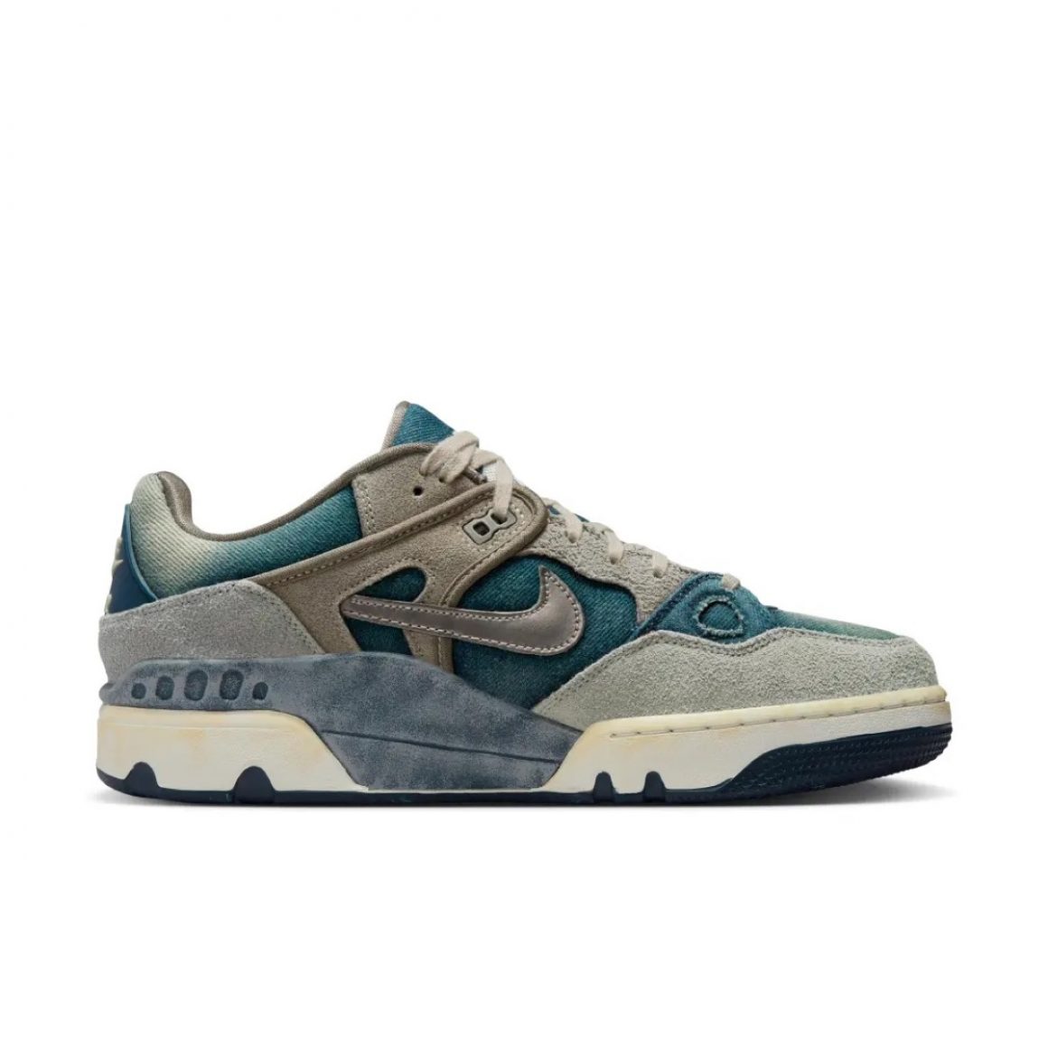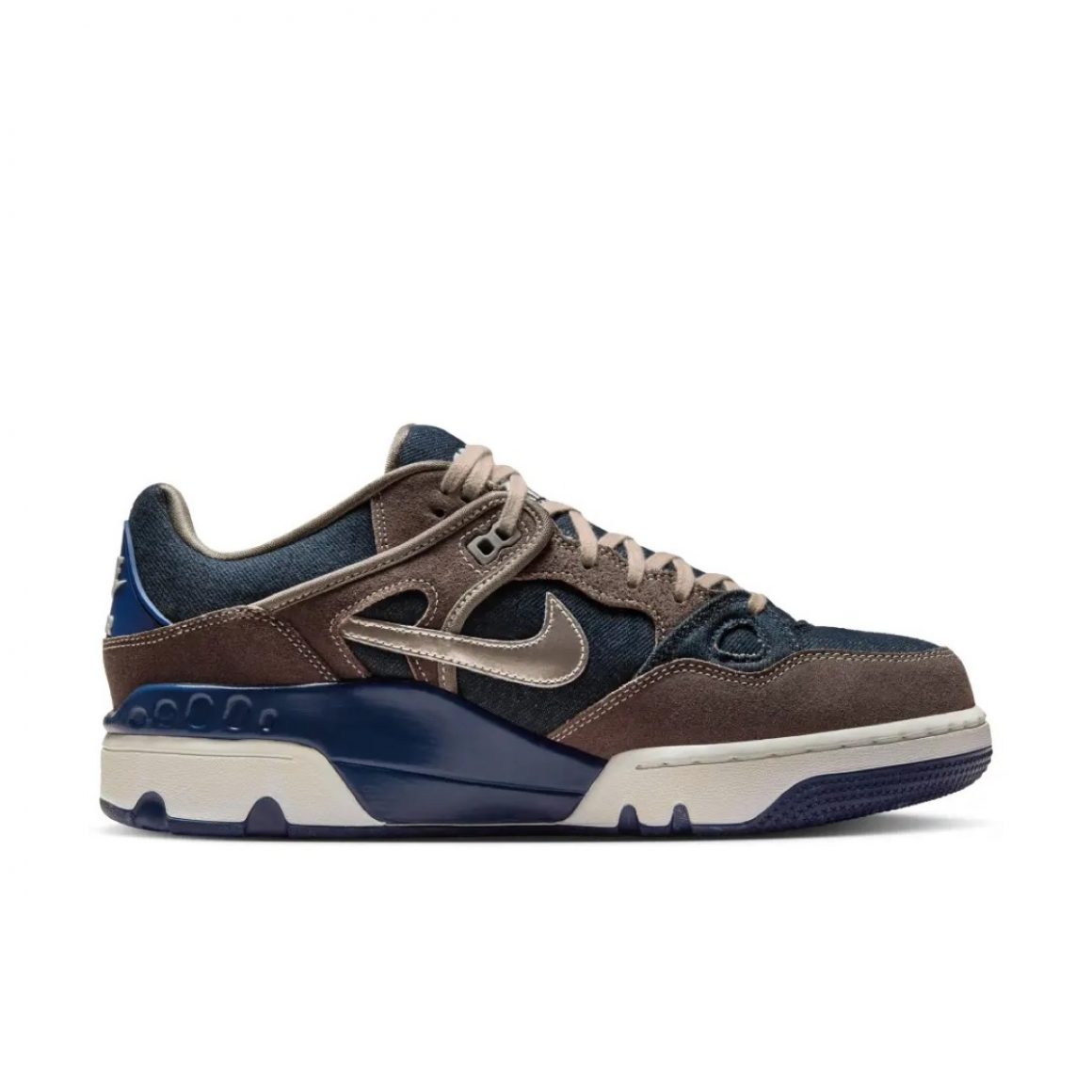 Le premier coloris est la Nigo x Levi’s x Nike Air Force 3 Olive Grey. La base en denim brut habille la toebox, le col de cheville et les panneaux latéraux. Ces derniers sont sertis d’un Swoosh platine, rappelant la teinte de la semelle intermédiaire. L’empeigne est renforcée par des empiècements en cuir suédé marron sur les garde-boues et les passages de lacets. Ce design est complété par une semelle extérieure marine, assortie à la languette. Le second coloris, baptisé Nigo x Levi’s x Nike Air Force 3 Enigma Stone, se distingue par une palette plus claire et nuancée. Les tons beige, sable et pierre créent une atmosphère plus estivale, presque élégante, où le denim prend des allures plus douces, notamment grâce à l’effet délavé. Ici, la Air Force 3 s’éloigne de son aura robuste pour se rapprocher d’un objet lifestyle sophistiqué, pensé pour les amateurs de pièces originales qui aiment s’aventurer en dehors des sentiers battus.