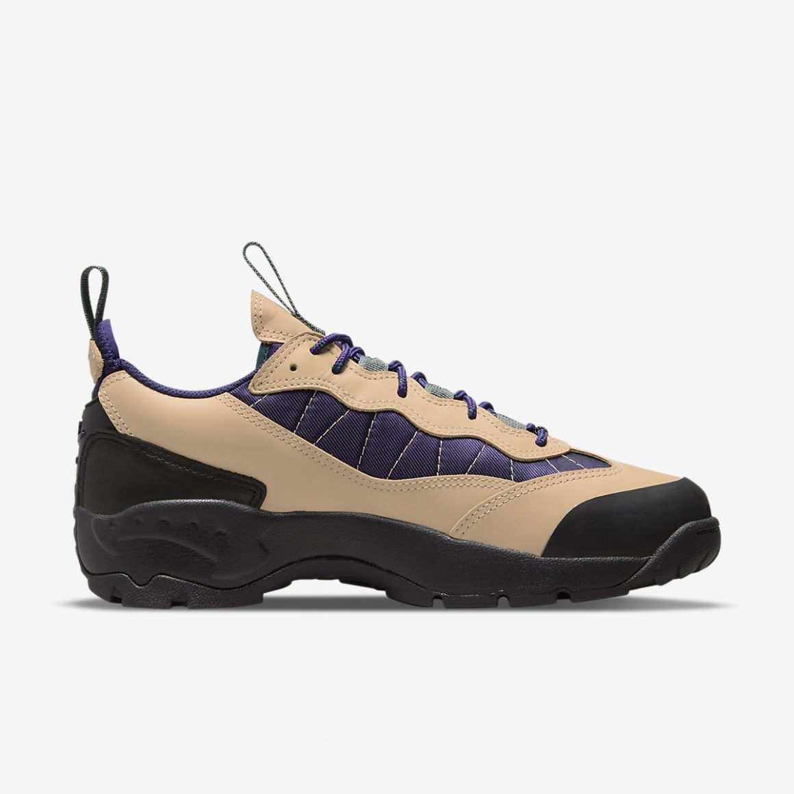 Prévue de revenir dans son coloris original, elle arborera un cuir beige, en contraste avec du mesh violet et quelques touches vert forêt. Un second coloris dichromatique alterne entre tissu noir et cuir vert canard. Enfin, une itération triple black terminera la première série de rééditions de la Nike ACG Air Mada.
