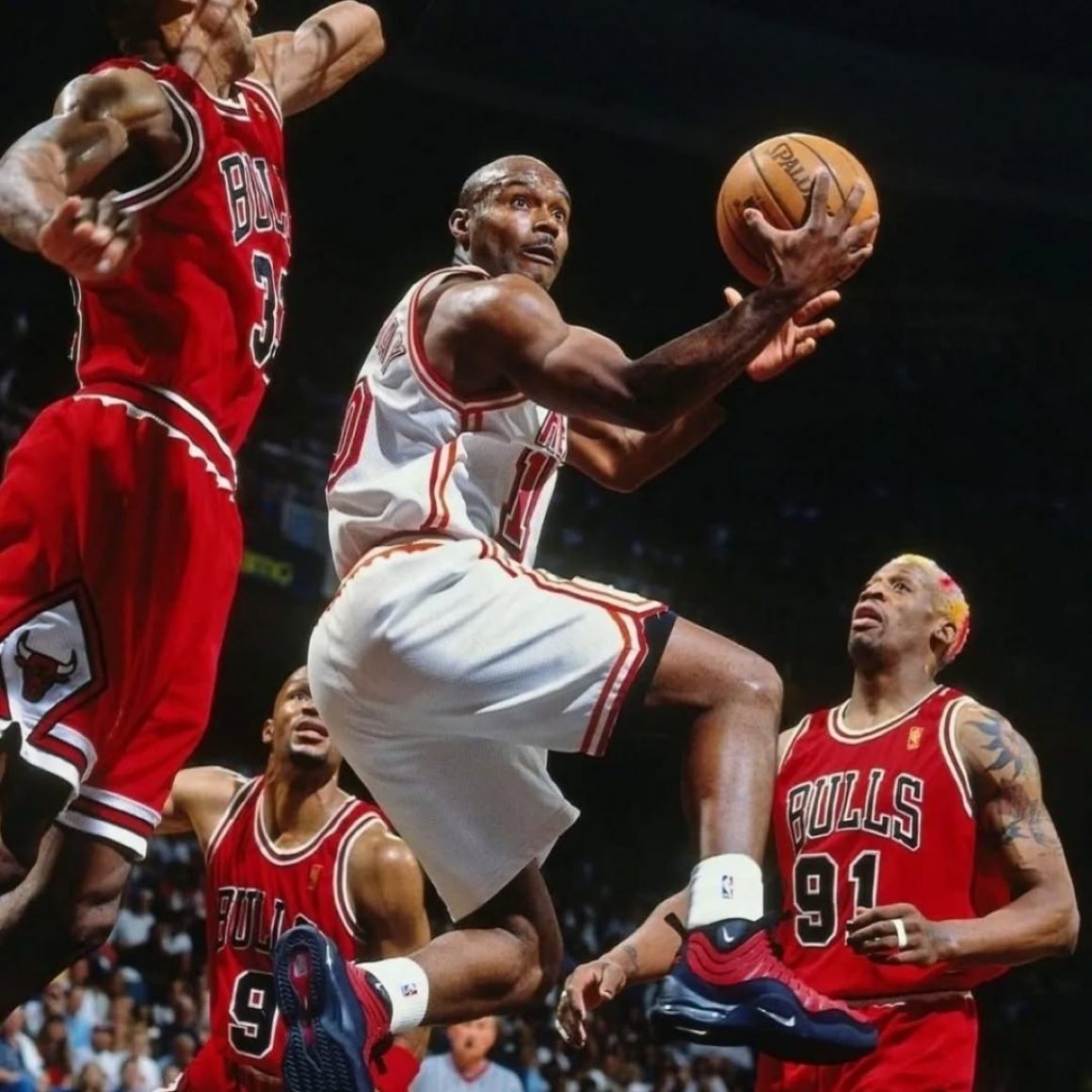 À l’époque de sa sortie, la Nike Air Bakin n’est pas une chaussure neutre. Elle se distingue immédiatement par son design enflammé, avec ses lignes ondulées qui semblent couler le long de la tige comme de la lave incandescente. Conçue pour les joueurs explosifs, elle s’impose notamment aux pieds de Tim Hardaway, meneur vedette des Miami Heat, qui la portera à plusieurs reprises pendant la saison NBA. Avec son allure robuste, sa semelle imposante et ses détails graphiques saisissants, la Bakin reflète parfaitement l’esprit de son époque. Elle incarne un moment où Nike cherche à capturer l’intensité du jeu à travers des silhouettes capables de traduire la personnalité et le style des joueurs. Hardaway, réputé pour sa vitesse de pénétration, trouve dans la Bakin une chaussure à la hauteur de sa créativité.