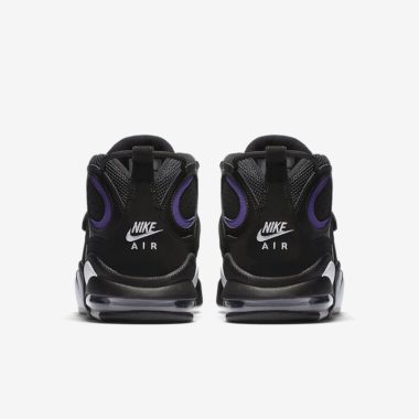Sortie en 1995, la paire a tout de suite eu le surnom Godzilla en rapport avec les publicités de l’époque qui voyaient le joueur des Phoenix Suns affronter le monstre (même si ce n’est pas ce modèle qu’il a aux pieds dans les pubs). Ce n’est pas la première fois que la paire est rééditée puisqu’on l’a déjà vue en 2007. On retrouve sur cette retro l’association de cuir et nubuck, tout en noir. Des touches de violet, de blanc et d’orange viennent rappeler les couleurs de l’équipe NBA située dans l’Arizona.