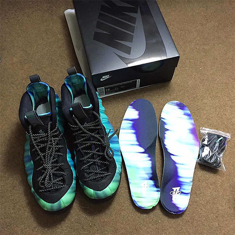 Deux jeux de lacets accompagneront cette Nike Air Foamposite « Northern Lights ».