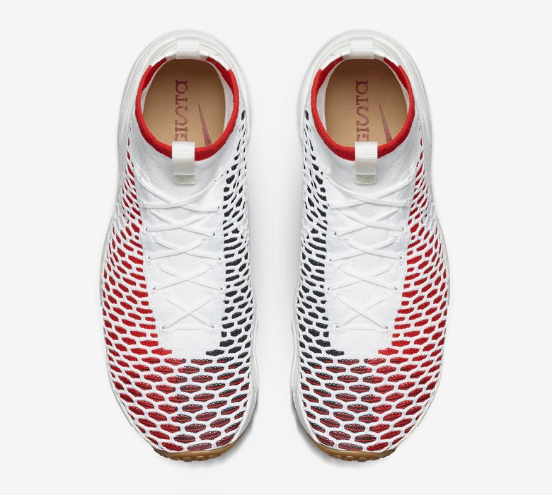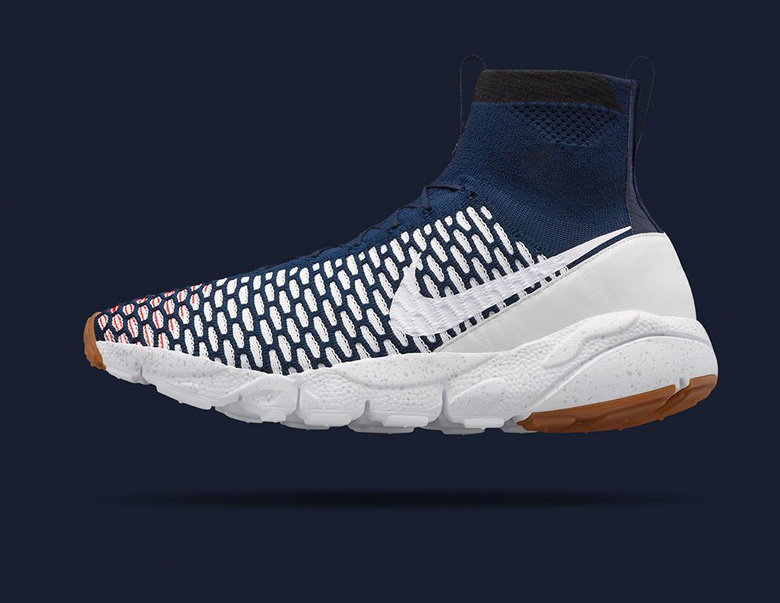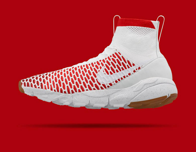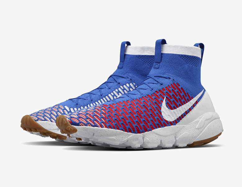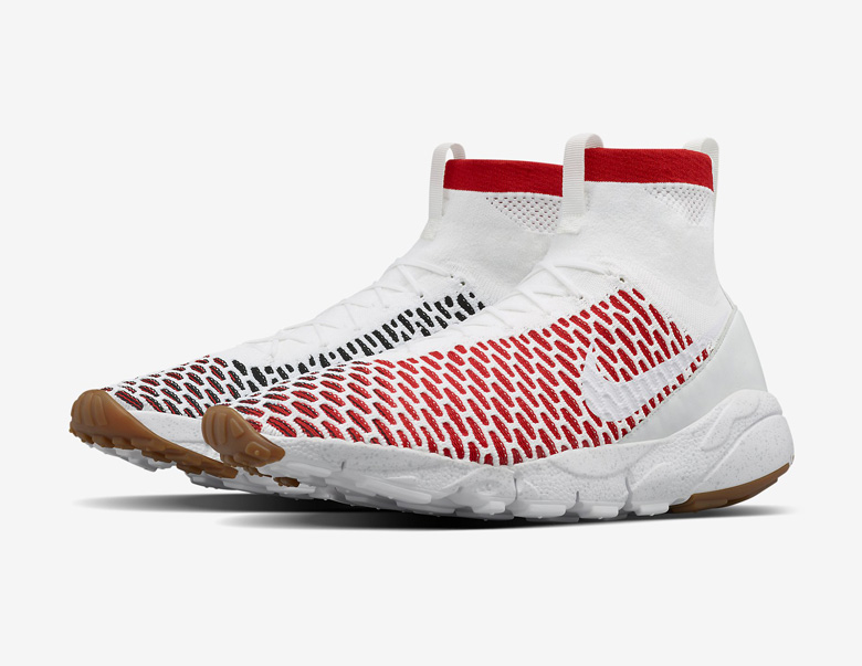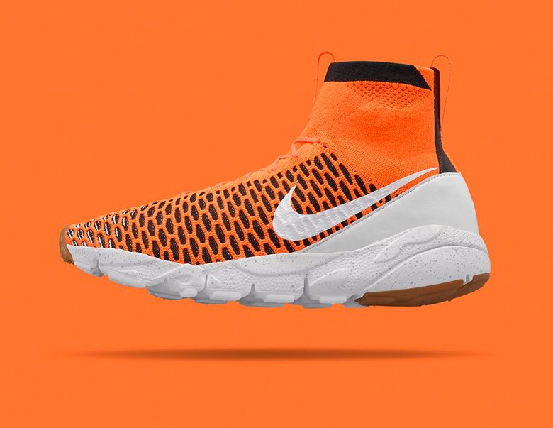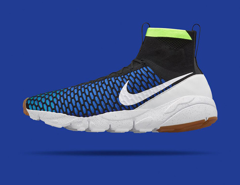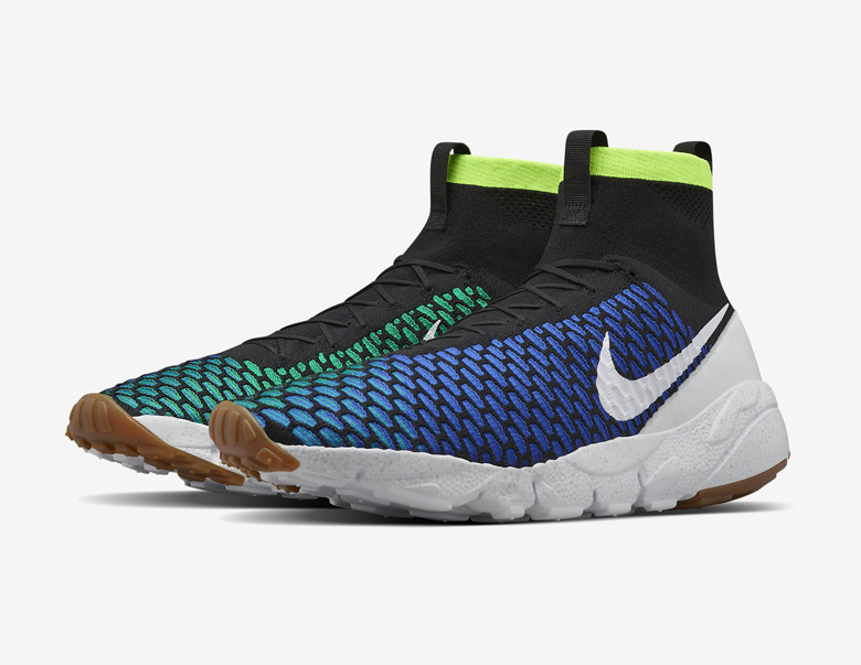 Cette sneaker réutilise la dernière version de semelle extérieure de la Nike Air Footscape. Celle-ci est désormais crantée avec plusieurs éléments en gomme visible à l’avant comme au talon.Pour la partie supérieure de la paire, Nike s’est inspiré des nouveaux crampons de football Magista et de leur chausson tissé avec la technologie Nike Flyknit.