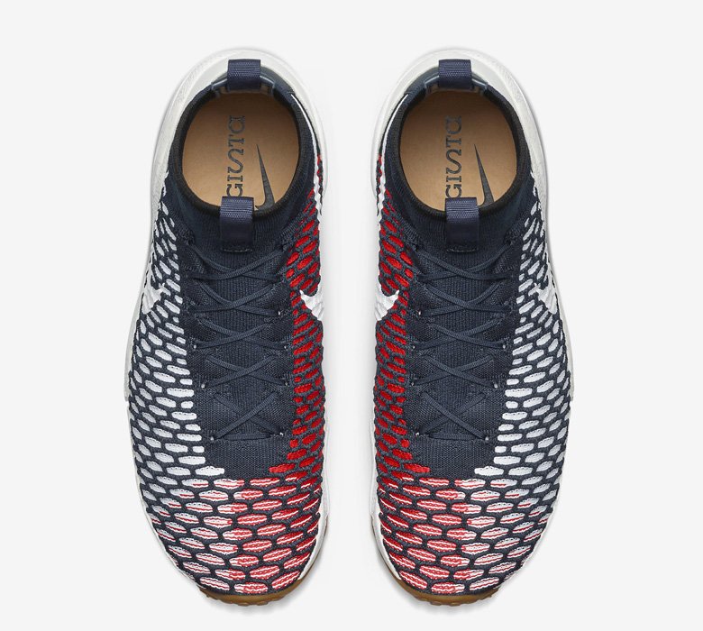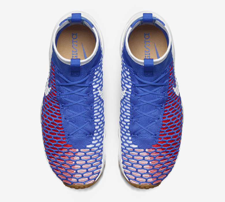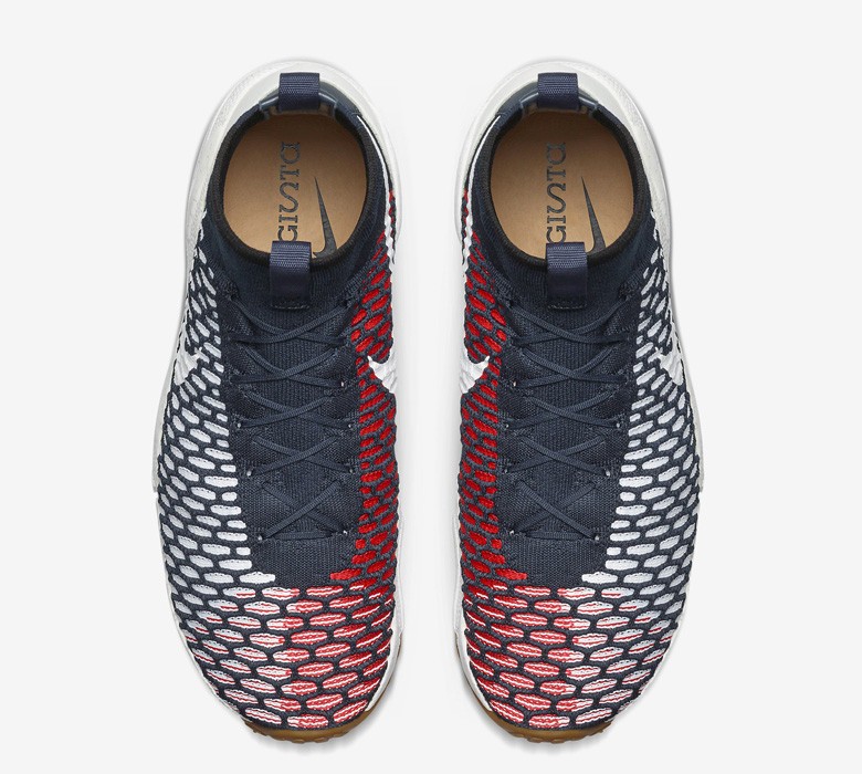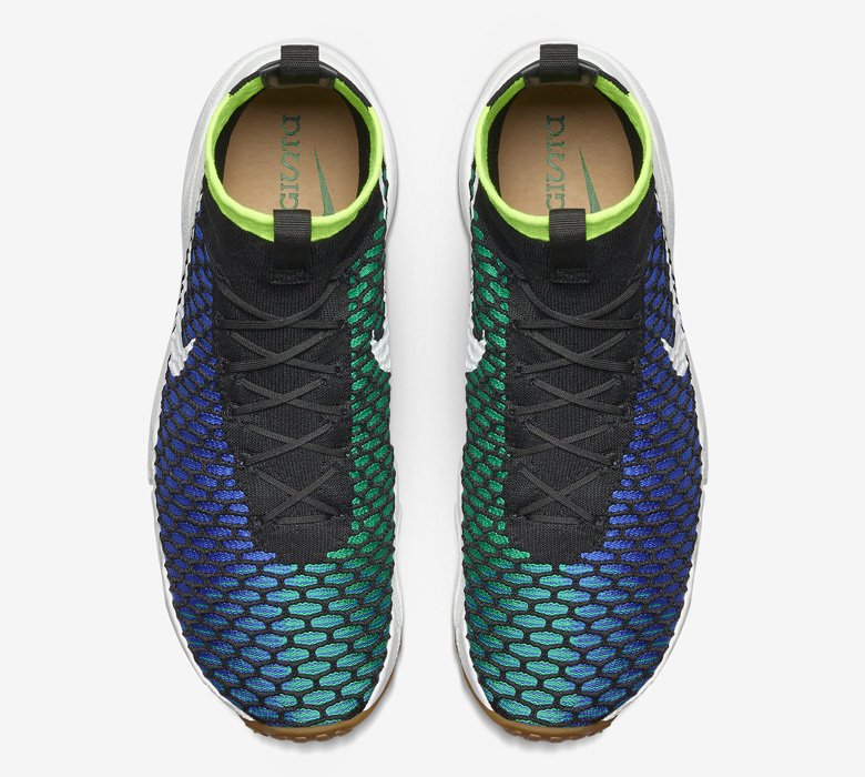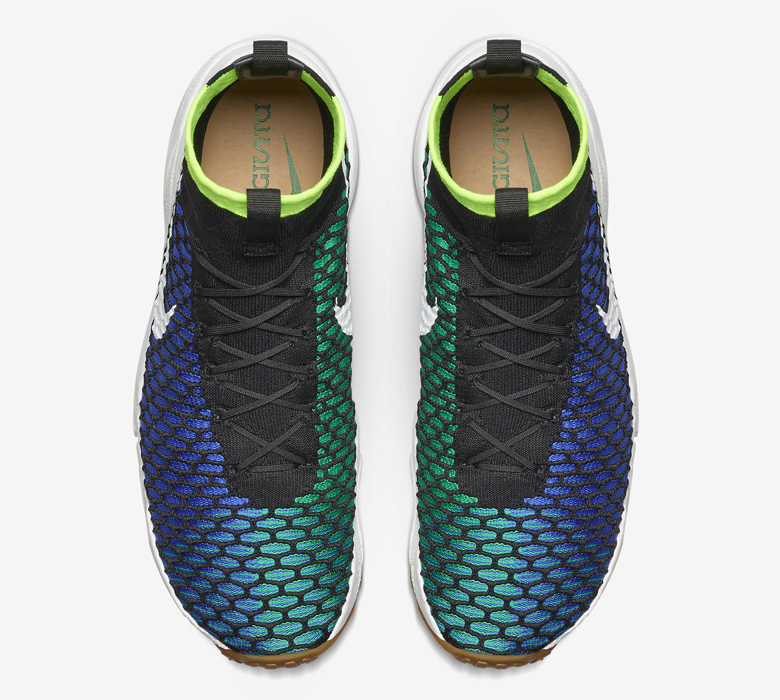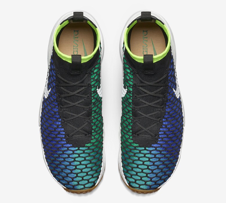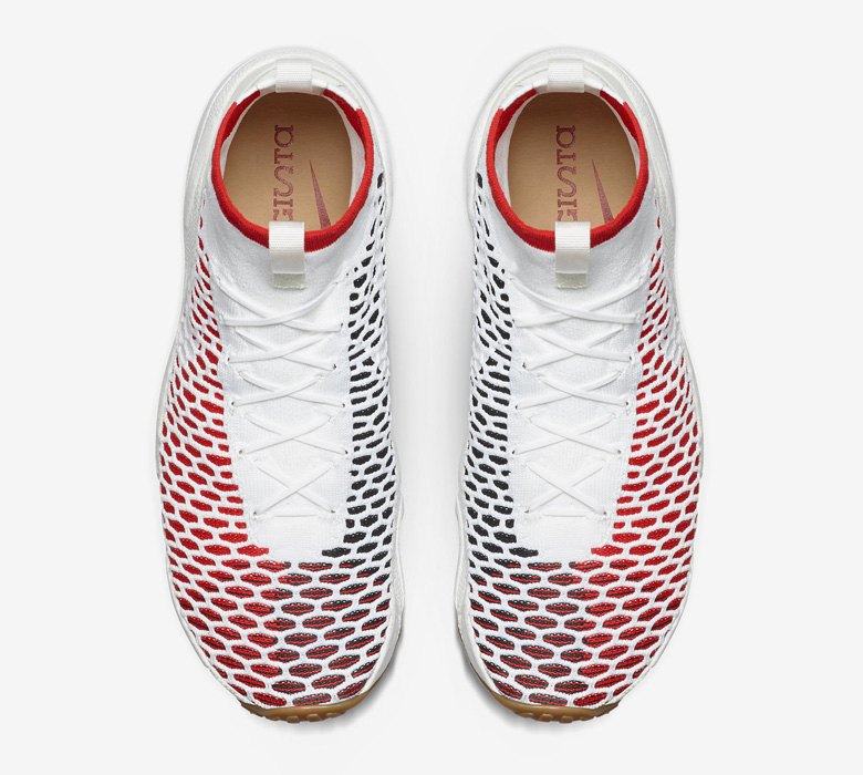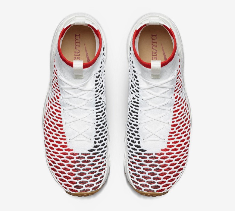 Cette sneaker réutilise la dernière version de semelle extérieure de la Nike Air Footscape. Celle-ci est désormais crantée avec plusieurs éléments en gomme visible à l’avant comme au talon.Pour la partie supérieure de la paire, Nike s’est inspiré des nouveaux crampons de football Magista et de leur chausson tissé avec la technologie Nike Flyknit.