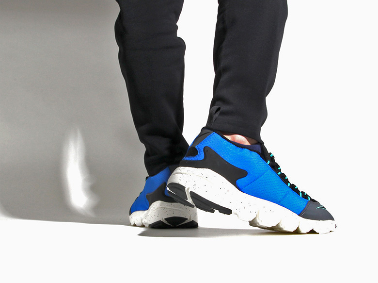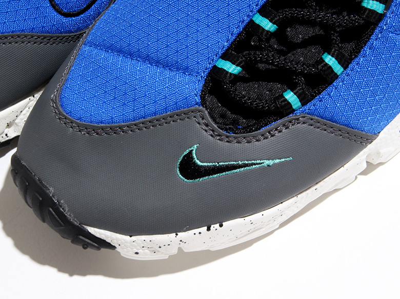 Le modèle Nike Air Footscape est sorti pour la toute première fois en 1995 et a été décliné de plusieurs manières par la suite avec notamment les versions tressées dites « Woven » imaginées par HTM. C’est en 2010 que Nike propose une évolution de cette paire avec la version NM (Natural Motion) dont la semelle était inspirée de la technologie Nike Free. Pour la collection de la fin d’année, Holiday 2016, la Nike Air Footscape NM reviendra dans plusieurs coloris inspirés de ceux d’origine. On vous présente aujourd’hui la version Hyper Cobalt qui dispose d’une empeigne en nylon bleu associée à un empiècement en cuir gris pour l’avant du pied. Plusieurs touches de bleu turquoise seront présentes sur les passants de lacets ainsi que sur le petit Swoosh brodé.