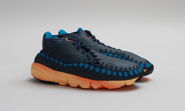 Le modèle Nike Air Footscape Woven Chukka n’est pas le plus simple à porter et la marque la rend encore un peu plus difficile avec cette semelle colorée. On apprécie néanmoins le rendu et la composition des couleurs avec cette association de plusieurs teintes de bleu et d’orange. Le dessus du pied est en nylon et en cuir.